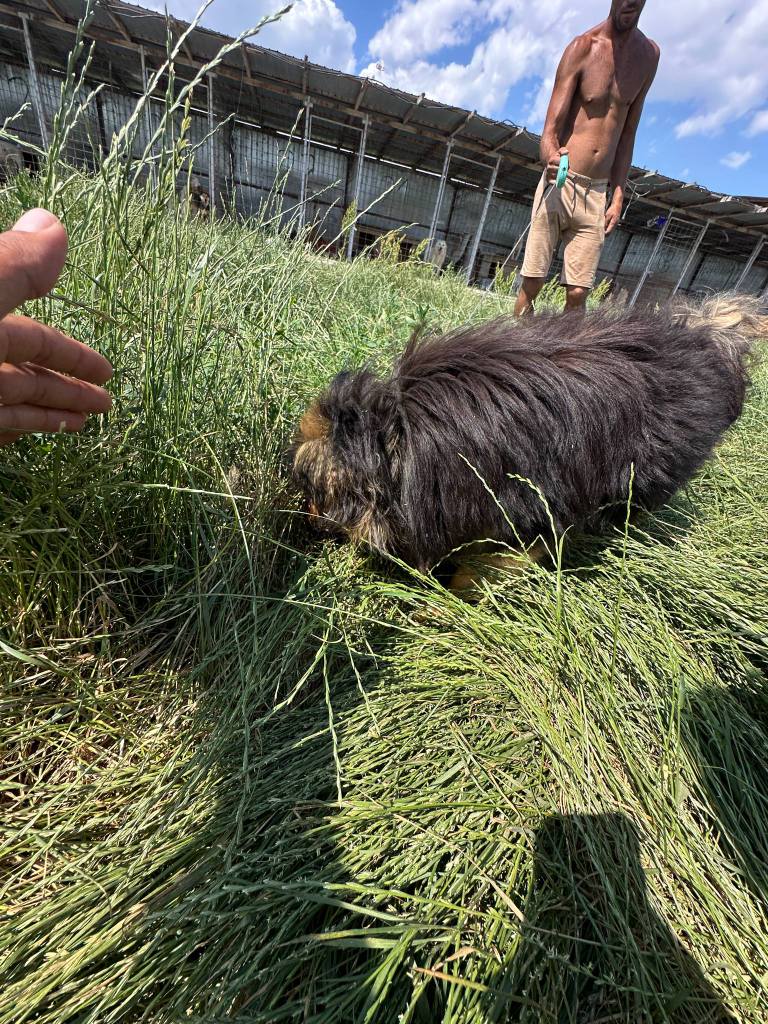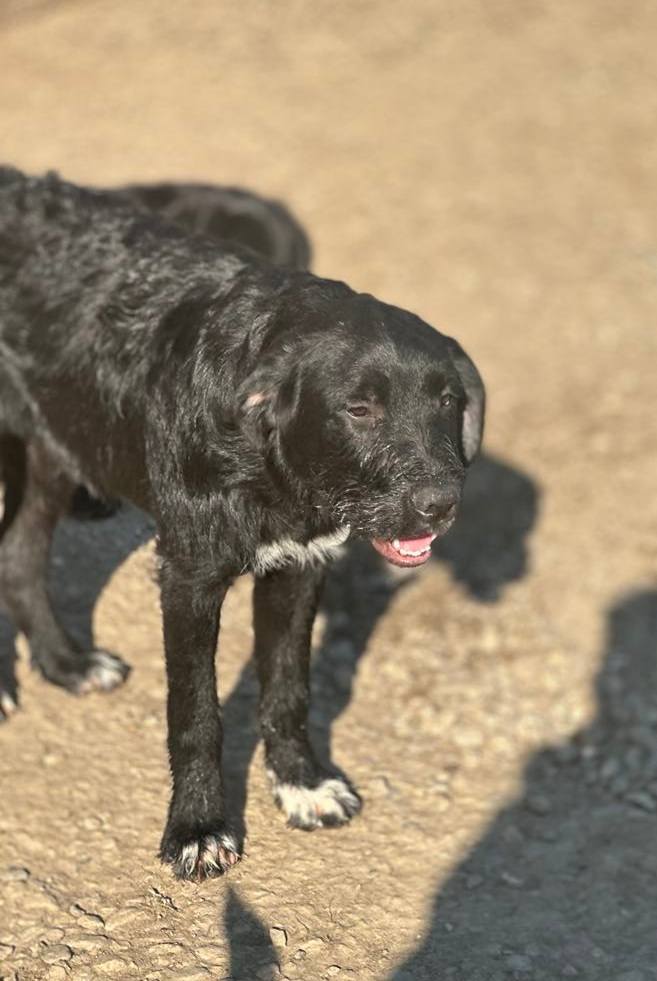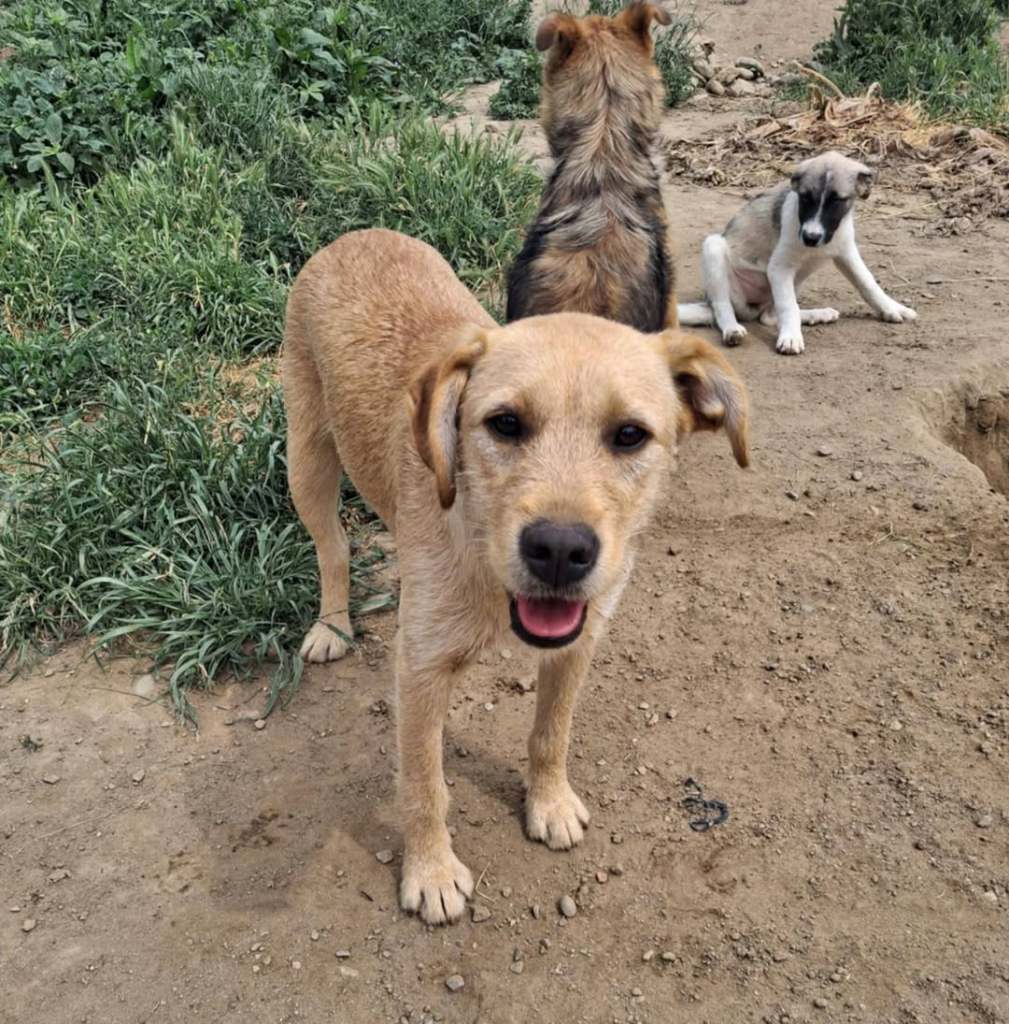 A little girl from the Balteni shelter who is now safe with Cosmin on the farm. She is a very sweet girl who likes to play with the other dogs in her pen. She gets along very well with everyone there. She can be shy to start. She has the most beautiful yellow eyes. She is small and about 4 years old. She will need a little practice using a lead but is a clever girl and will soon get the hang of things.