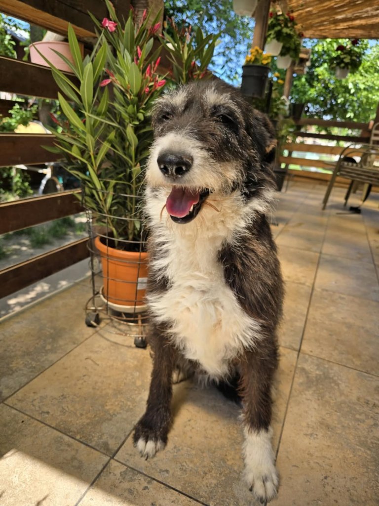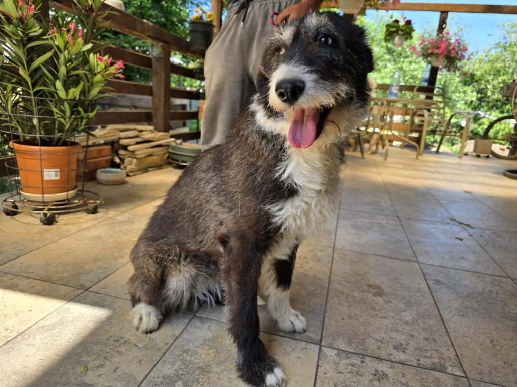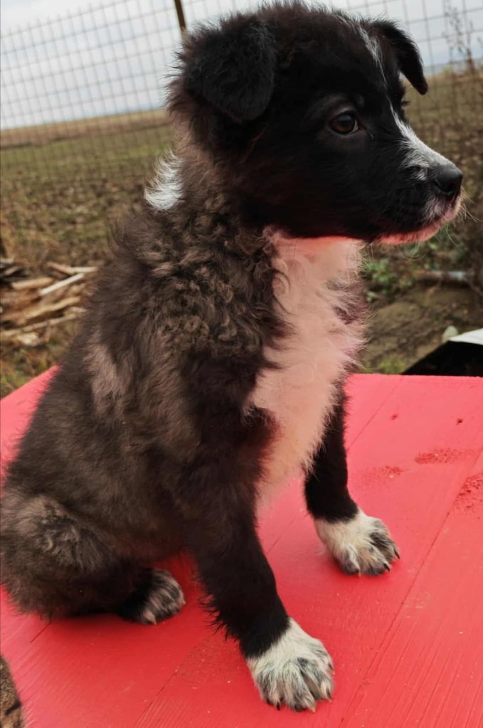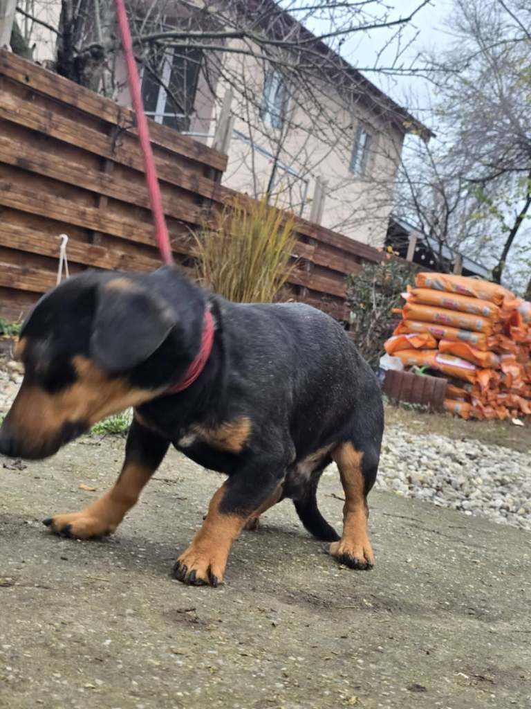 One of the little Aiud rescue pups we took at Christmas to stop them from perishing over the holidays. He is completely adorable. He is great with staff, all of the other dogs and puppies and is always out in the playground playing. He would come and sit near staff with the other dogs. He is around 9.5 months old now.