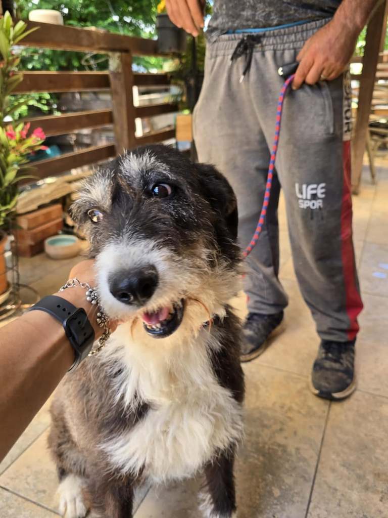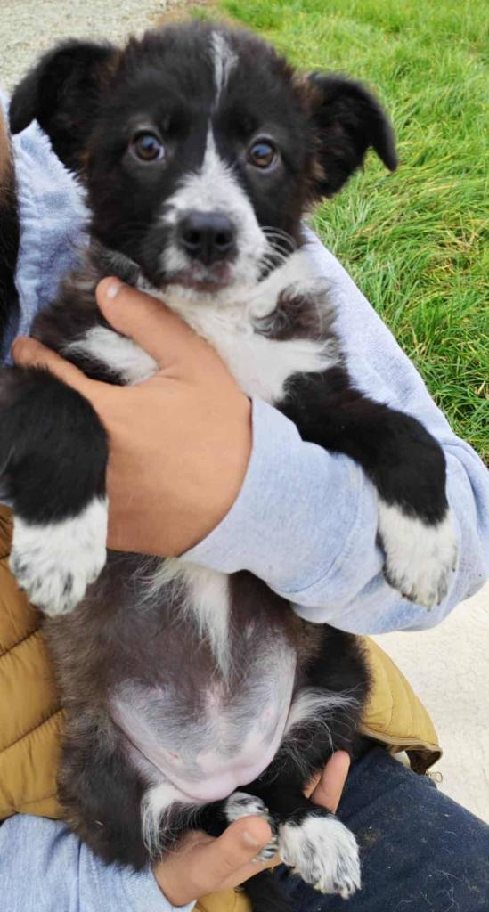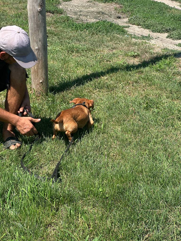 A little boy that Camelia found with his sibling on the steps to her apartment. She opened the door and they were both playing and wanted to come in. For sure someone left them there for her to find. Both are safe at the dog house now and have settled in beautifully. Puck is 6 months old, he is super sweet and playful. Loves his food. He gets along well with everyone there. He has lots of character. He will be maximum medium in size when mature.