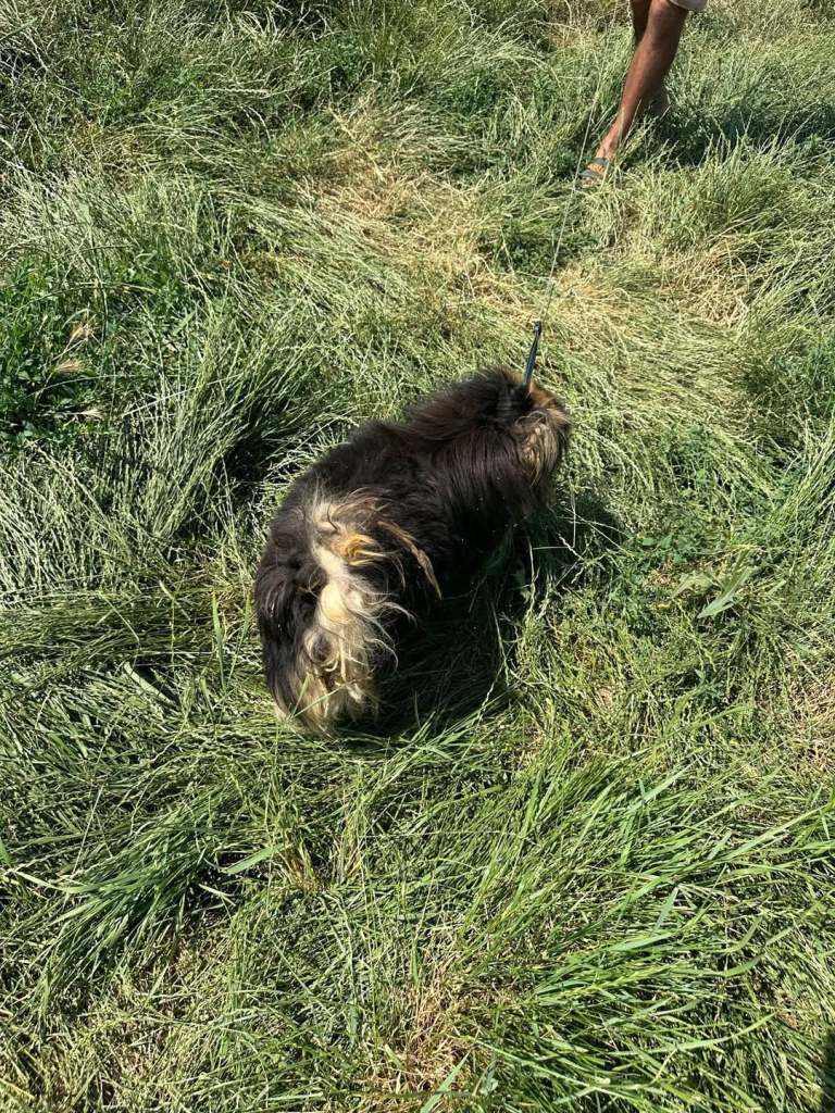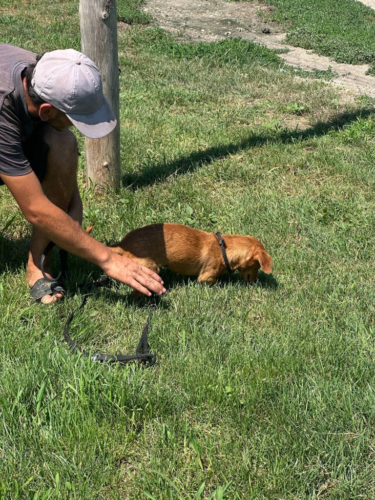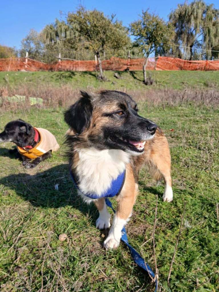 A little boy that we rescued from Balteni shelter and Cosmin says he’s a great little dog. When the pictures on the grass were taken, they couldn’t get him to look at the camera. He did very well on a lead, but needs some practice. He is very friendly and loves the helpers there. He lives with other small dogs very happily. He has a sweet personality and enjoyed being out and exploring. He needs a secure garden as probably would wander off if you weren’t watching him. Tayo is around 7 years old.