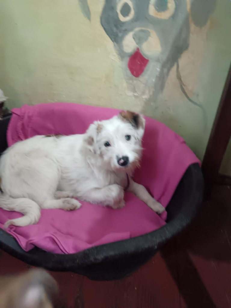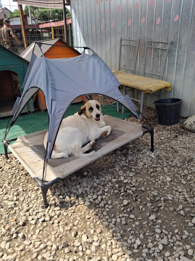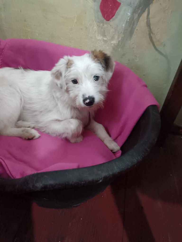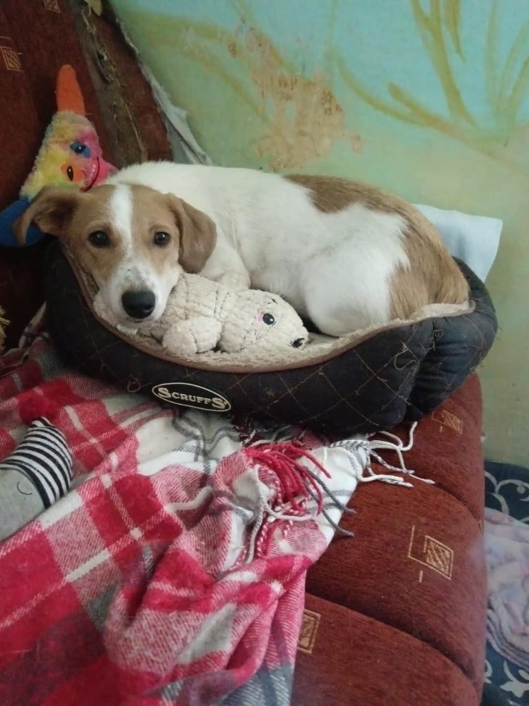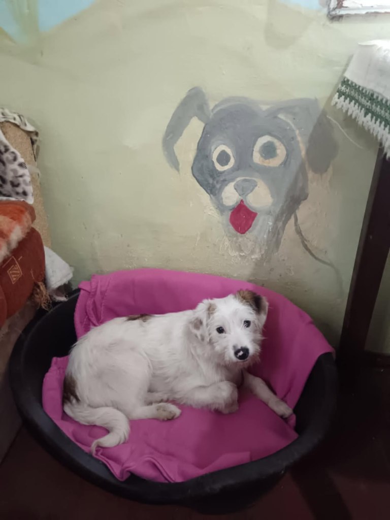 We took Erin out of Raduati public shelter in July. She was with Vet Gabi for a little while and then went to Camelia’s dog house. She is an amazing little dog. She has 3 puppies but is now spayed as they eat independently. She is super friendly and loving. She didn’t want to be in her pen at the vets, but wanted to be with the rescuers. She loves people and is great with other dogs. She is still very playful and is approximately 2 years old. She loves her food and loves her bed. We fell in love with her. She’s a gorgeous little soul. She’s very kind and sweet.
