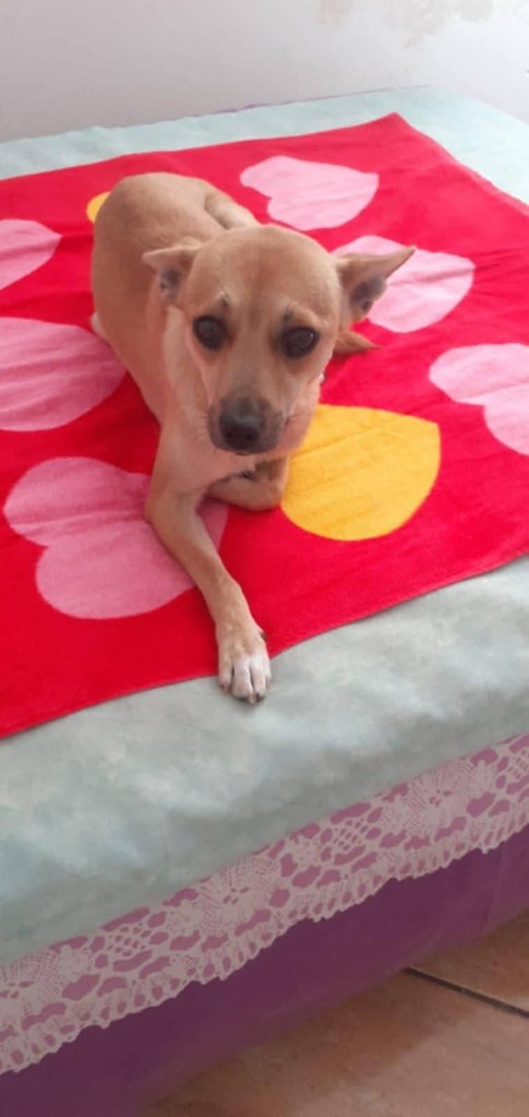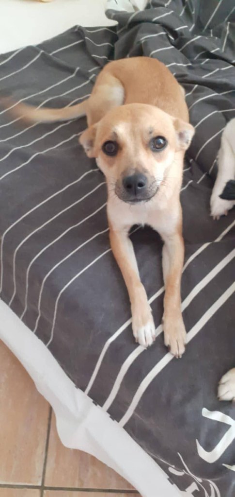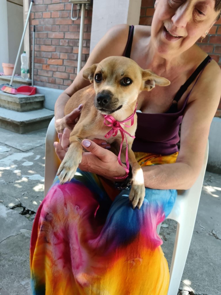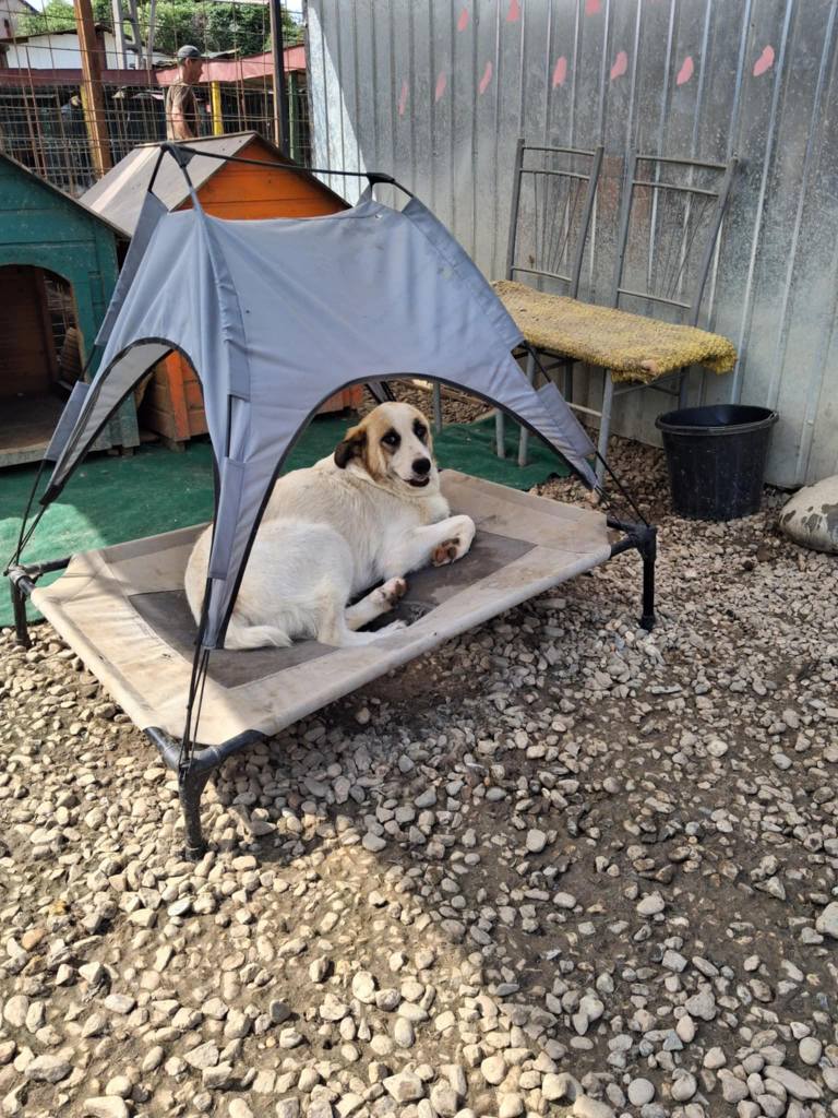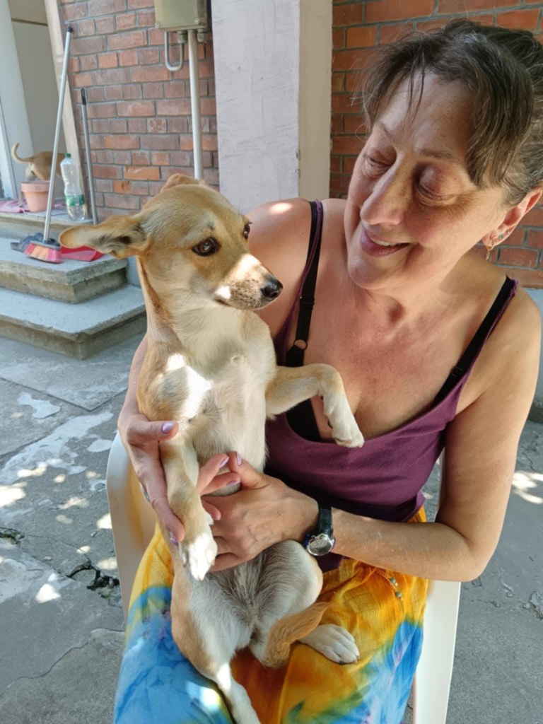 We took Erin out of Raduati public shelter in July. She was with Vet Gabi for a little while and then went to Camelia’s dog house. She is an amazing little dog. She has 3 puppies but is now spayed as they eat independently. She is super friendly and loving. She didn’t want to be in her pen at the vets, but wanted to be with the rescuers. She loves people and is great with other dogs. She is still very playful and is approximately 2 years old. She loves her food and loves her bed. We fell in love with her. She’s a gorgeous little soul. She’s very kind and sweet.