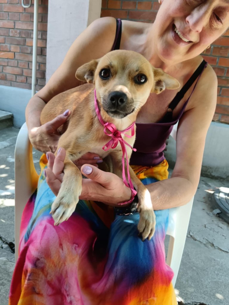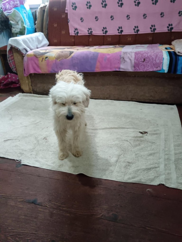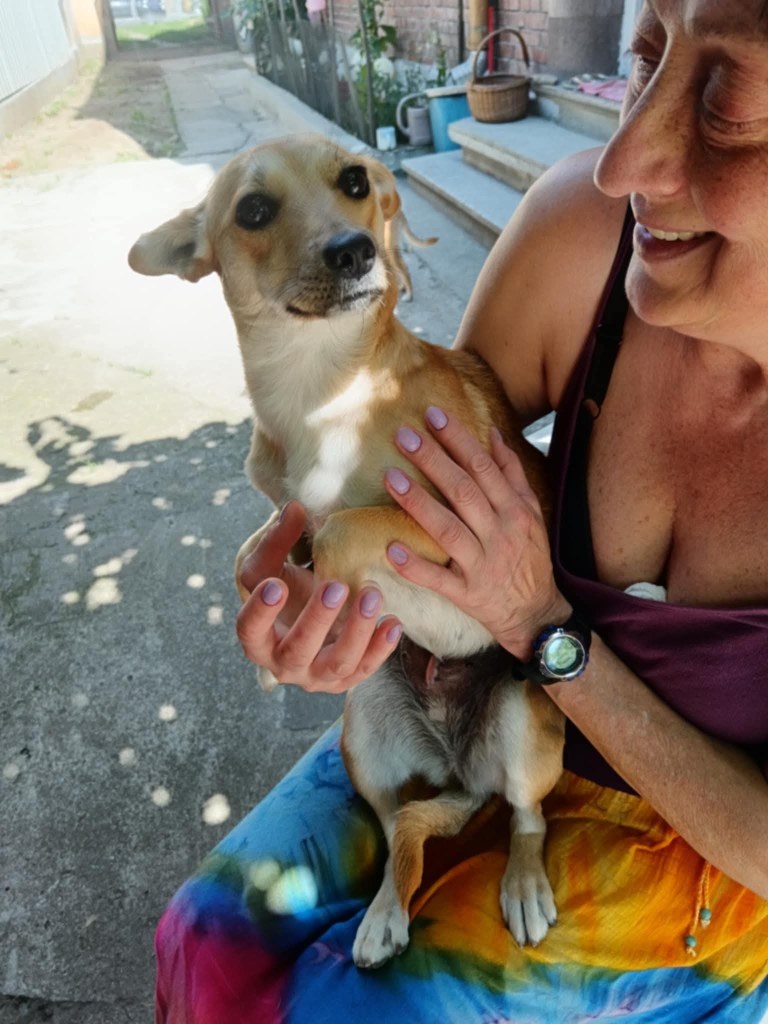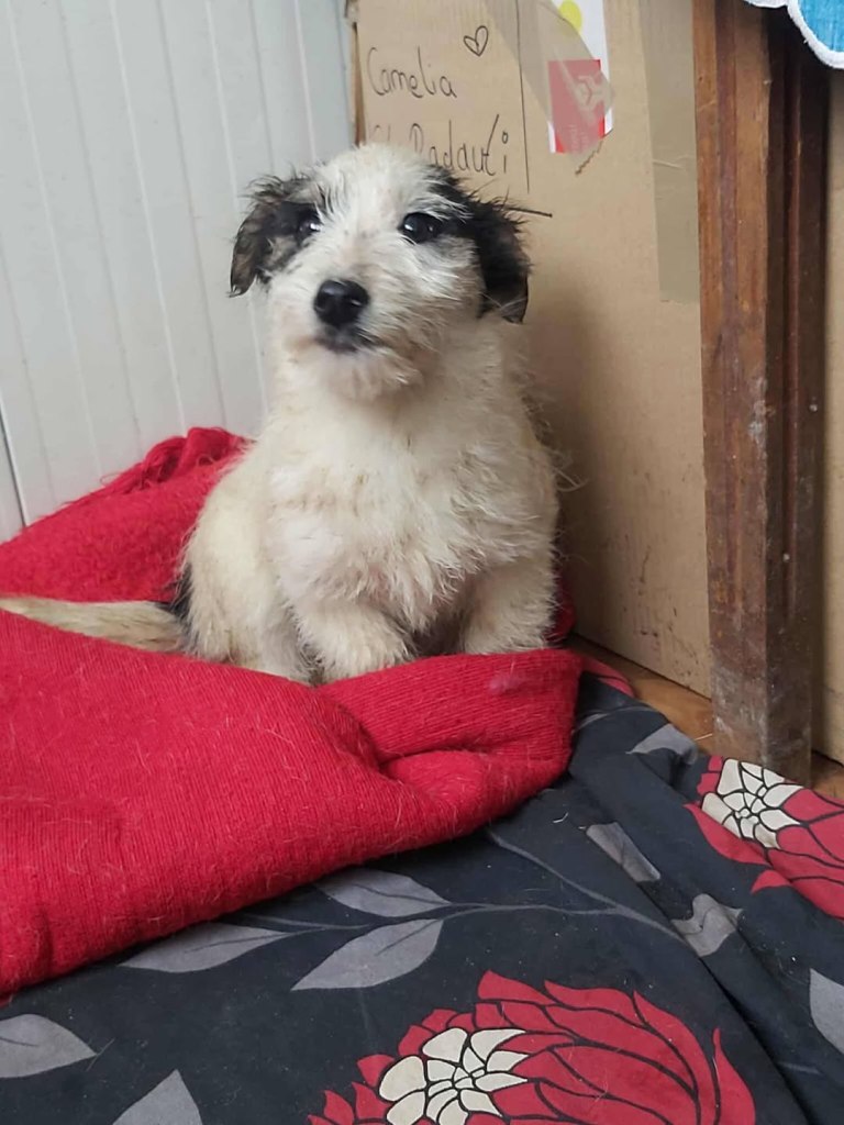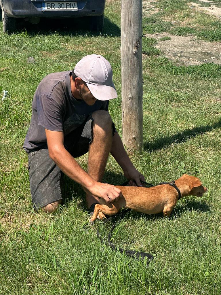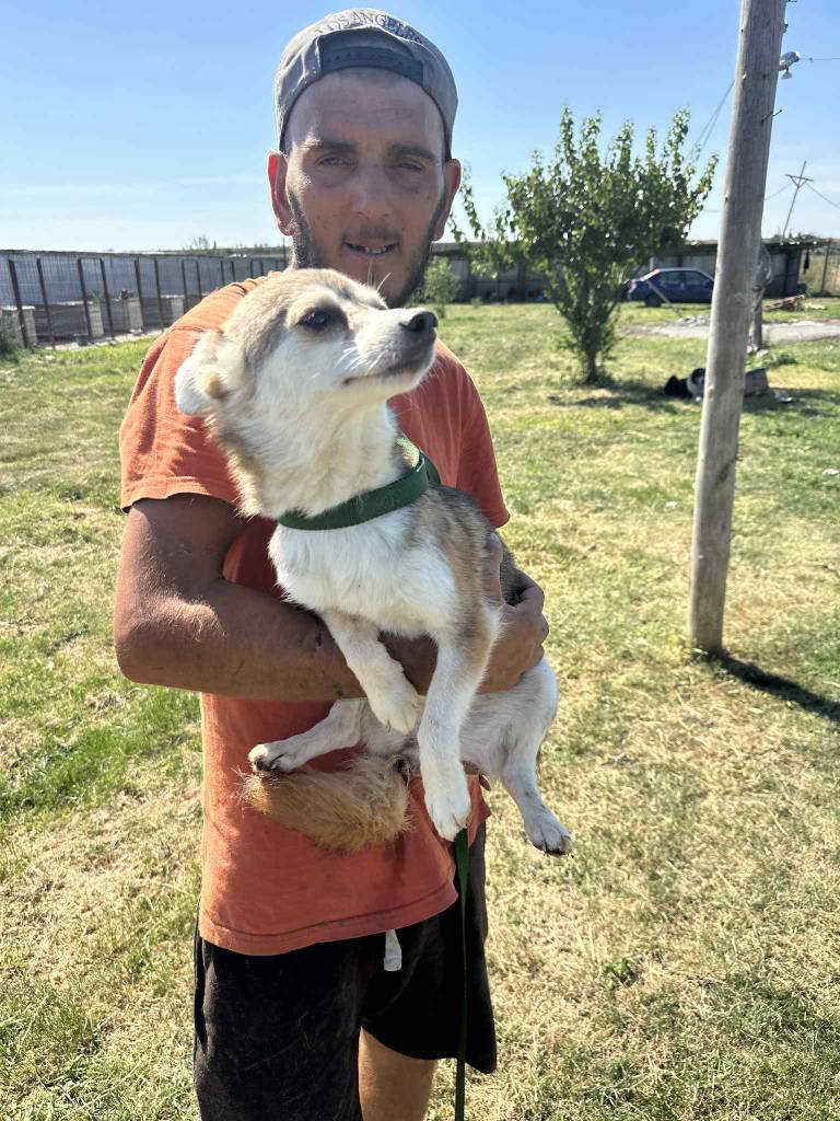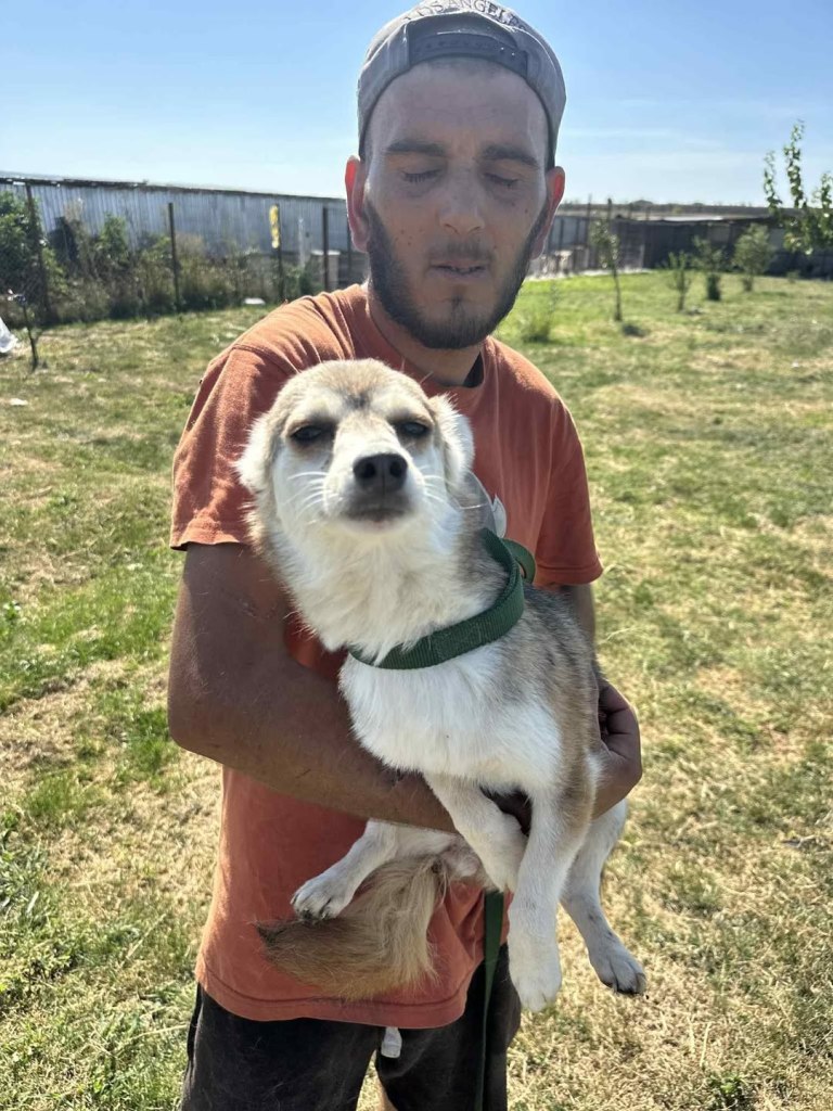 A small girl from a public shelter where she would surely have been killed. We’ve had her for a little while at the farm. Cosmin really likes her. He says she is really sweet. She is friendly and gets along well with the other small dogs that she shares her space with. She is 2-3 years old. She’s quite playful once she is used to you. A gentle soul. She will be worried and shy to begin with and a person needs to give her time to adjust to the changes.