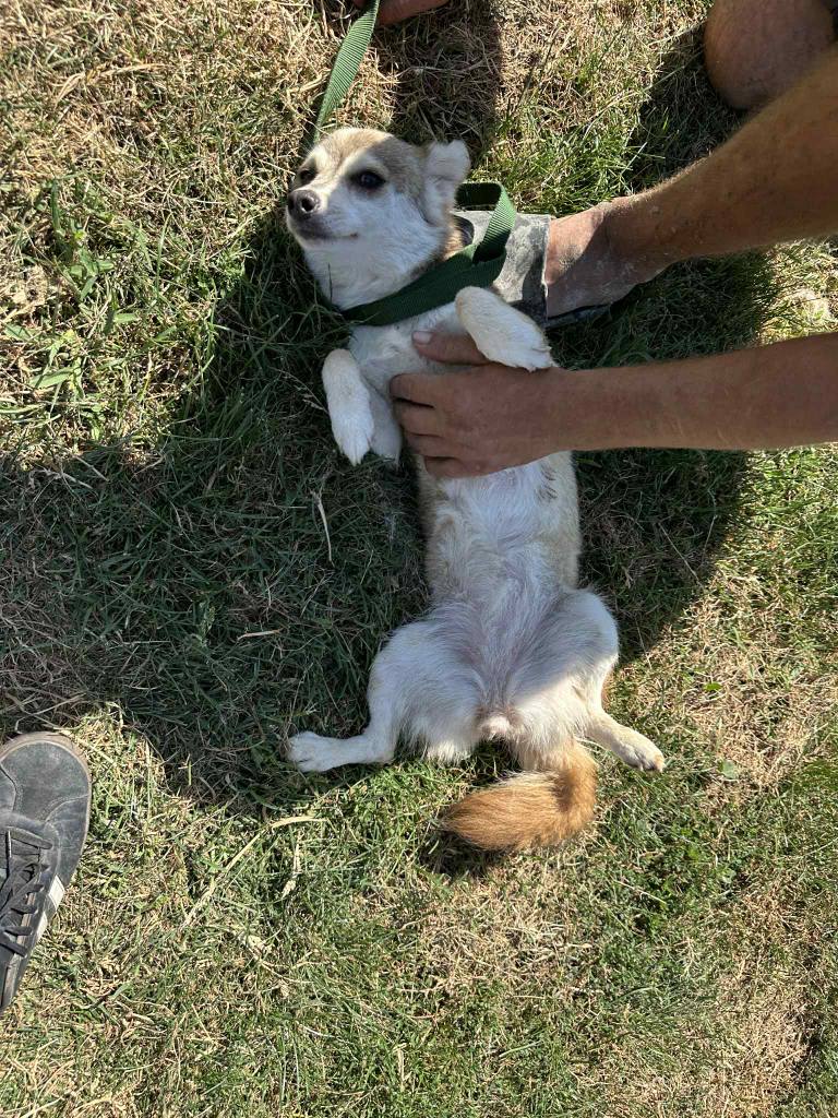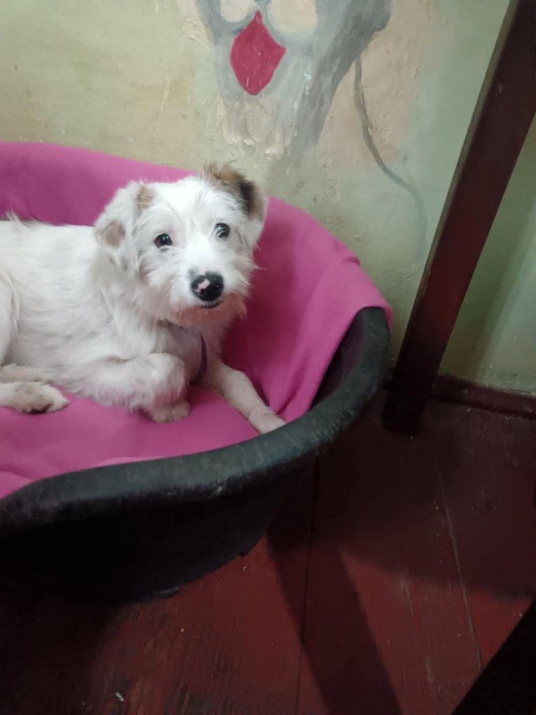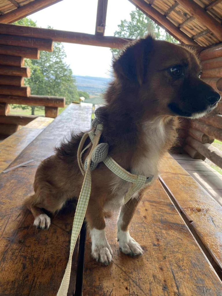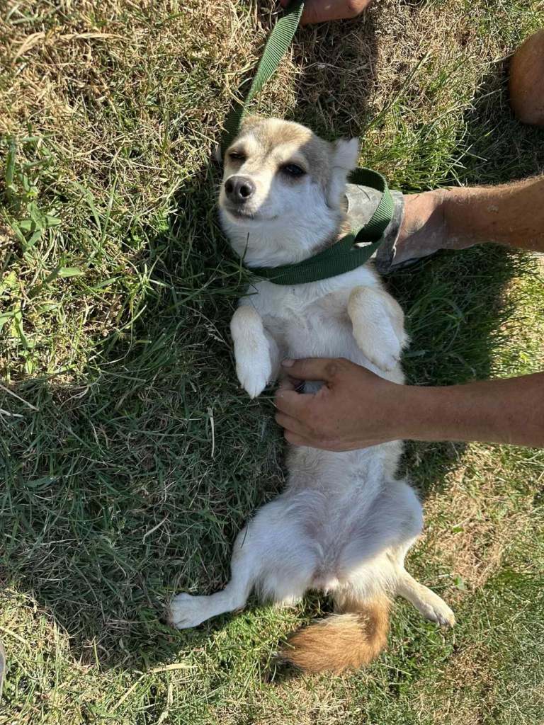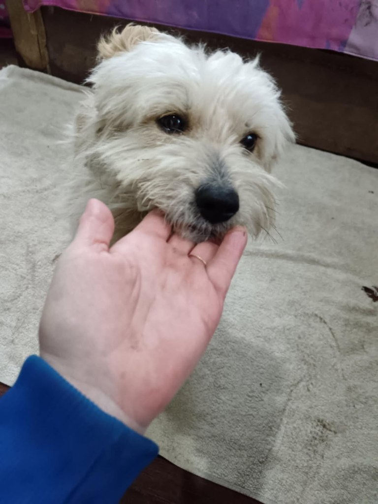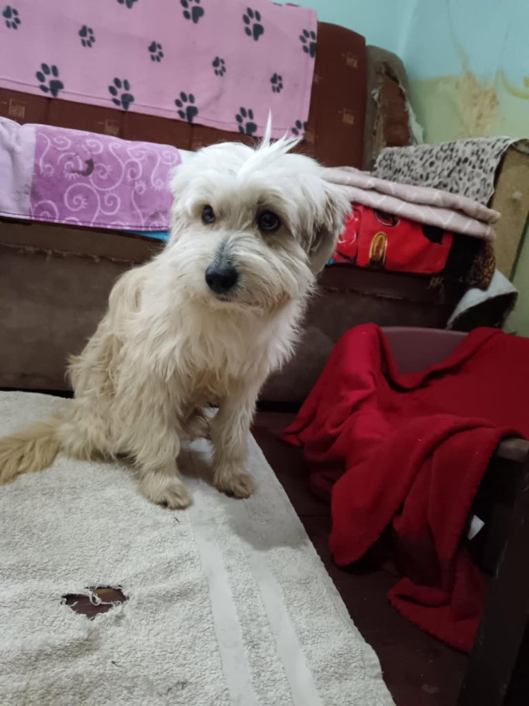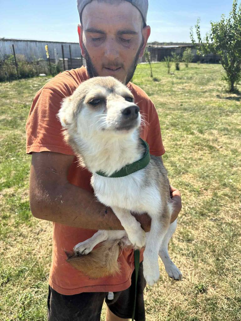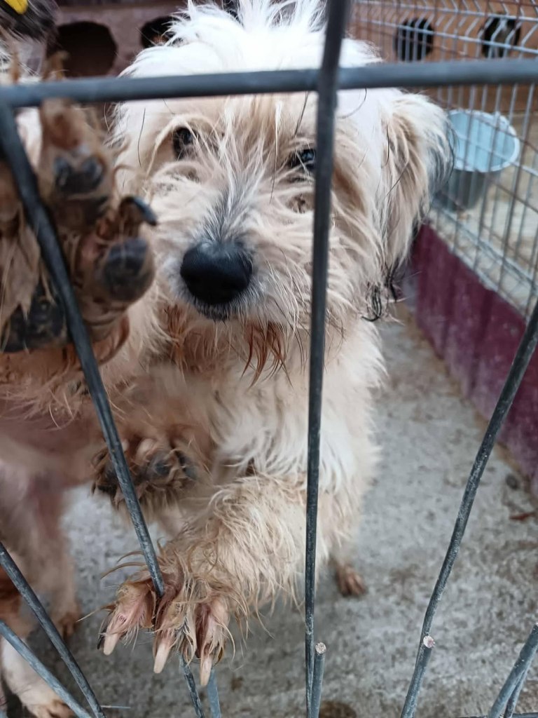 A small girl from a public shelter where she would surely have been killed. We’ve had her for a little while at the farm. Cosmin really likes her. He says she is really sweet. She is friendly and gets along well with the other small dogs that she shares her space with. She is 2-3 years old. She’s quite playful once she is used to you. A gentle soul. She will be worried and shy to begin with and a person needs to give her time to adjust to the changes.
