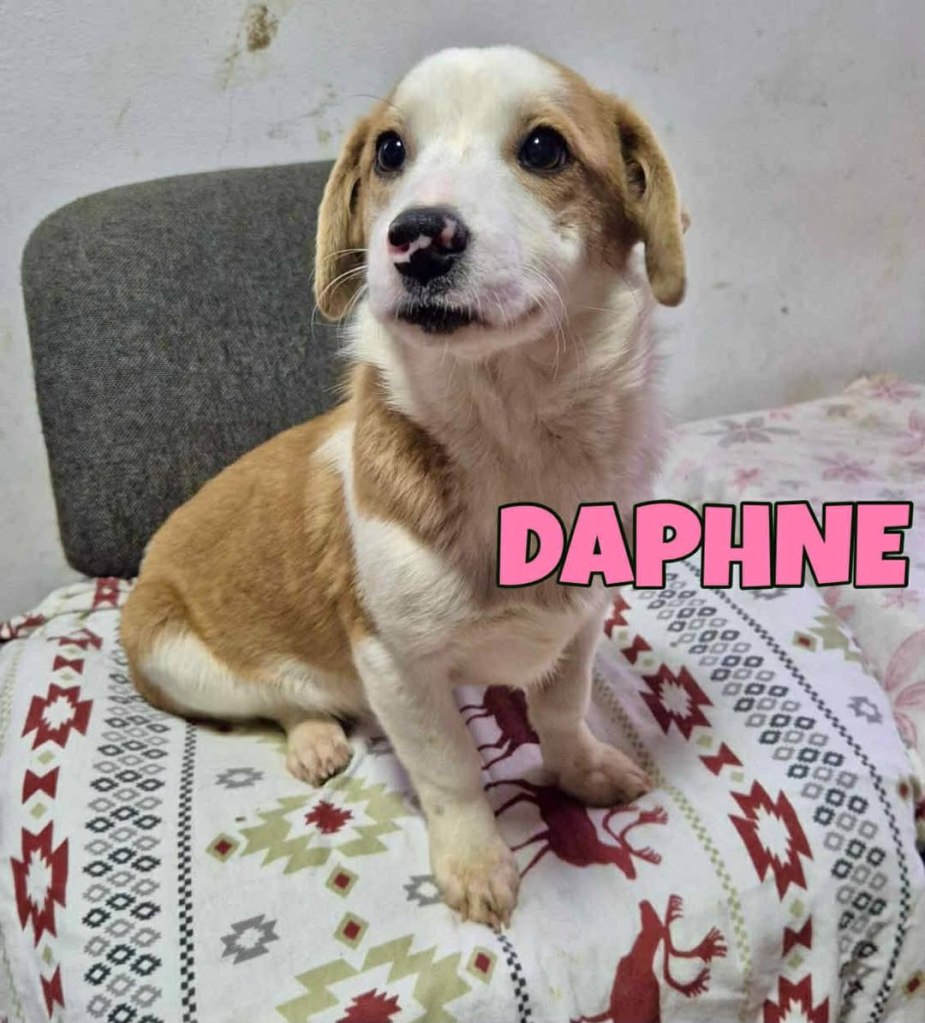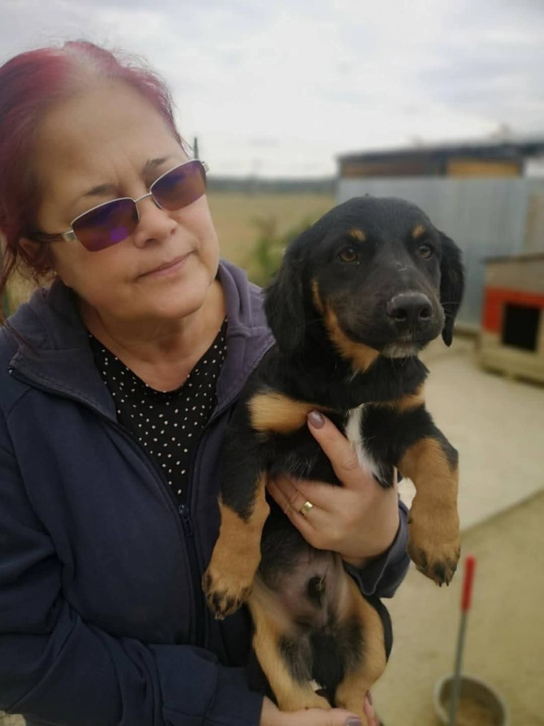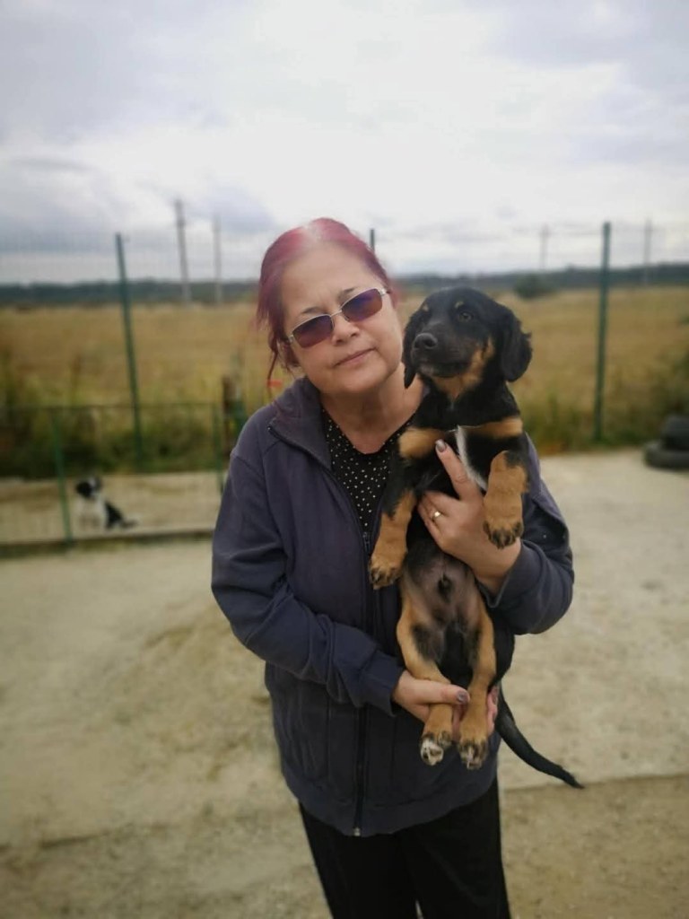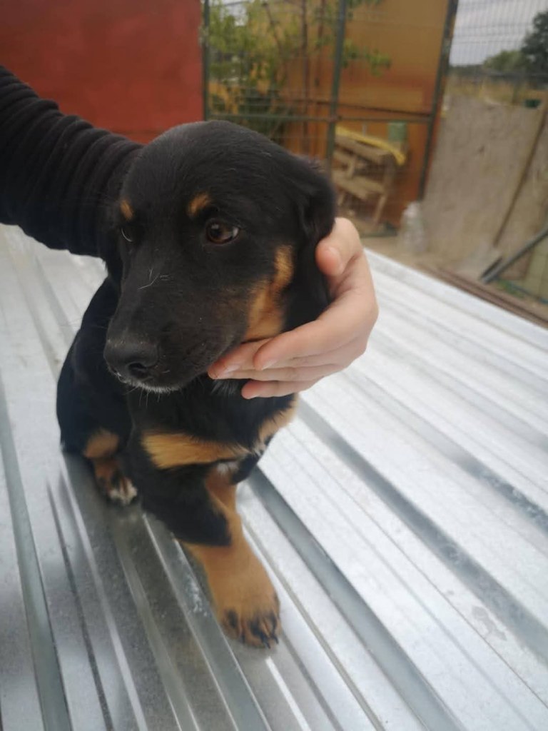 A little girl that Andreea found on the road abandoned. The friend another rescue is helping and sadly a third dog was already killed by cars. Daphne is very sweet and friendly. A gentle little girl. She gets along well with everyone at the shelter. She is great with dogs, cats and people. We don’t have any information about children. She is small at 35cms high and about 6 months old.