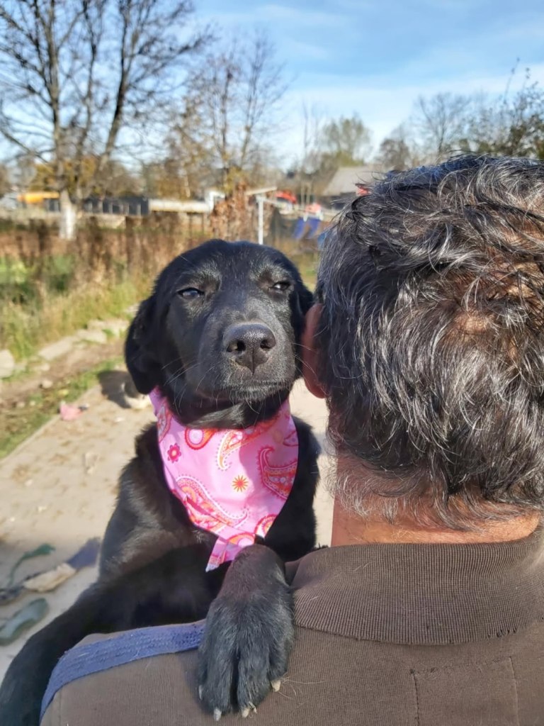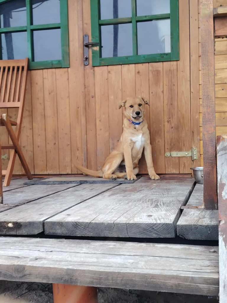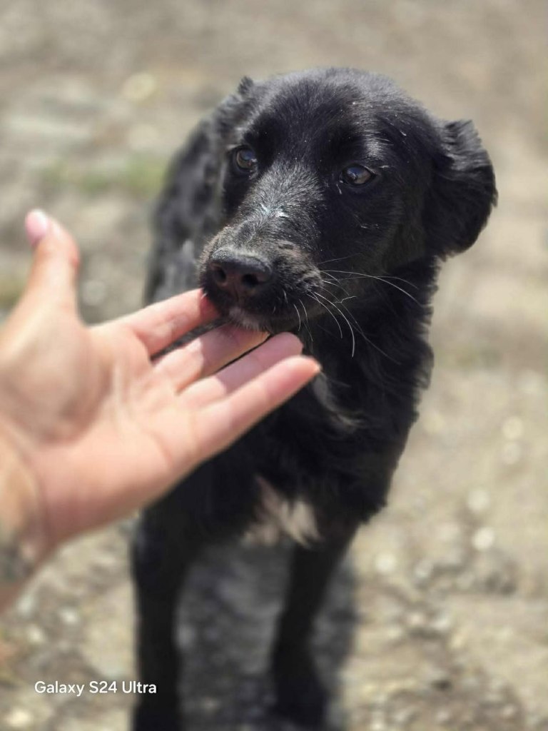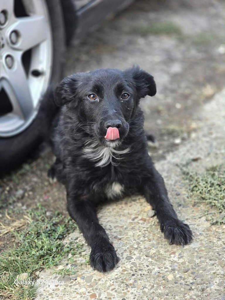 A little girl that Andreea found on the road abandoned. The friend another rescue is helping and sadly a third dog was already killed by cars. Daphne is very sweet and friendly. A gentle little girl. She gets along well with everyone at the shelter. She is great with dogs, cats and people. We don’t have any information about children. She is small at 35cms high and about 6 months old.