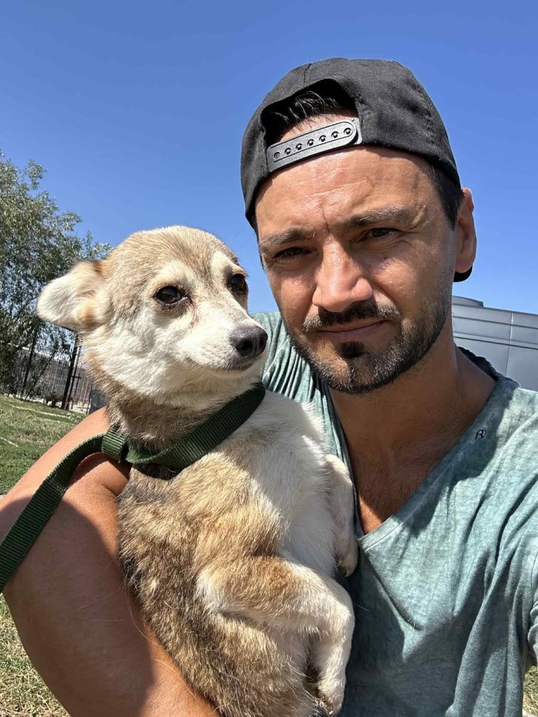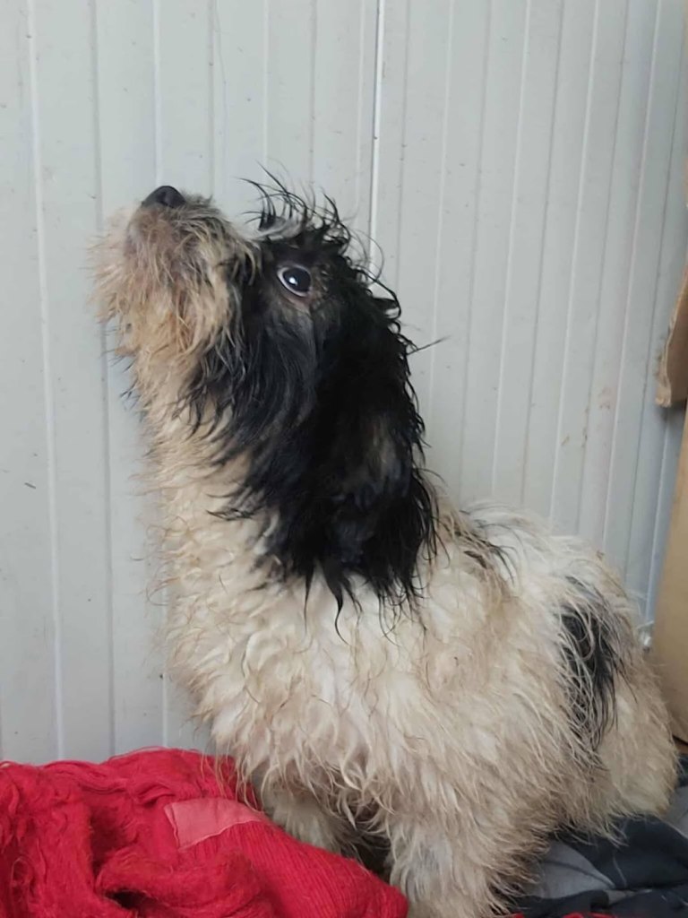 A really lovely boy who Ioana has found on the street. He was wet, muddy, cold, alone and hungry. She has him in safe foster now and he is feeling so much better. We’re told he’s such a good boy. He is friendly to people and fine around other dogs. He is also living with cats as you can see in the pictures. He is small and around 8kgs. He is about 3.5 years old.