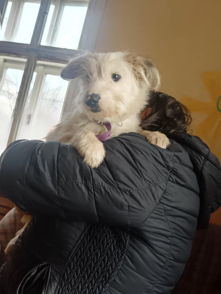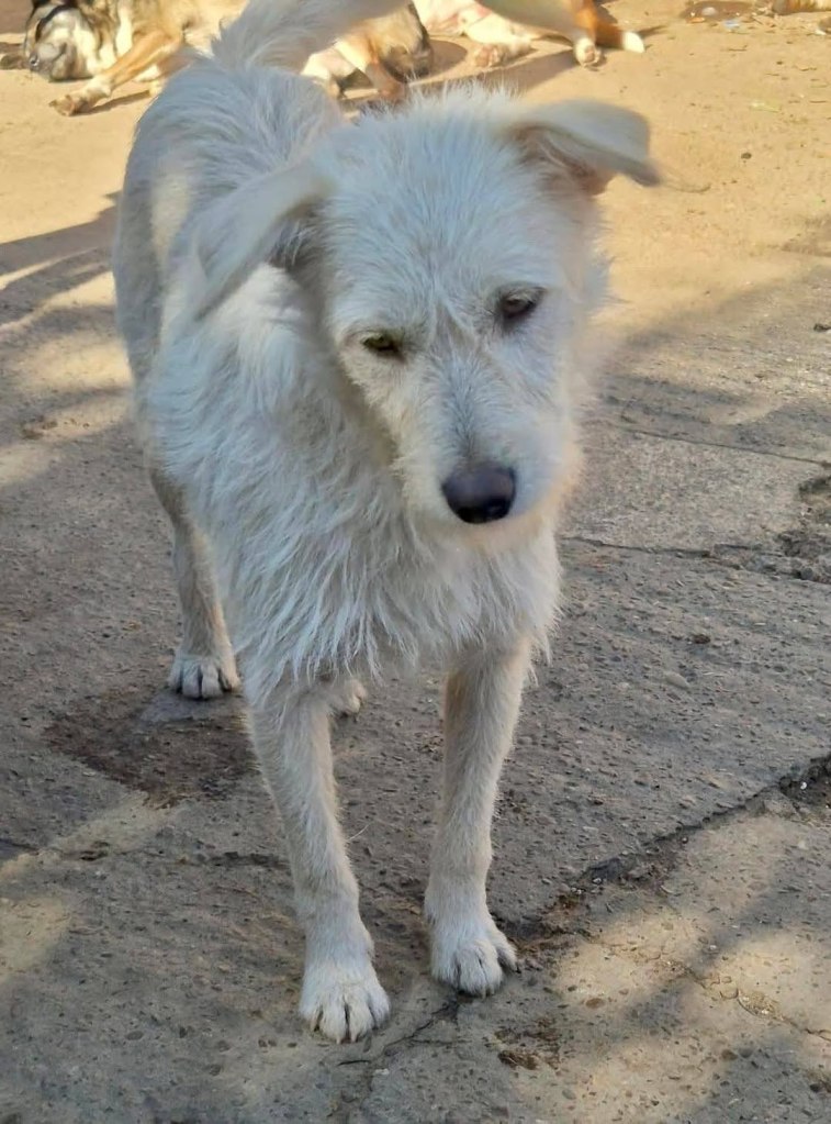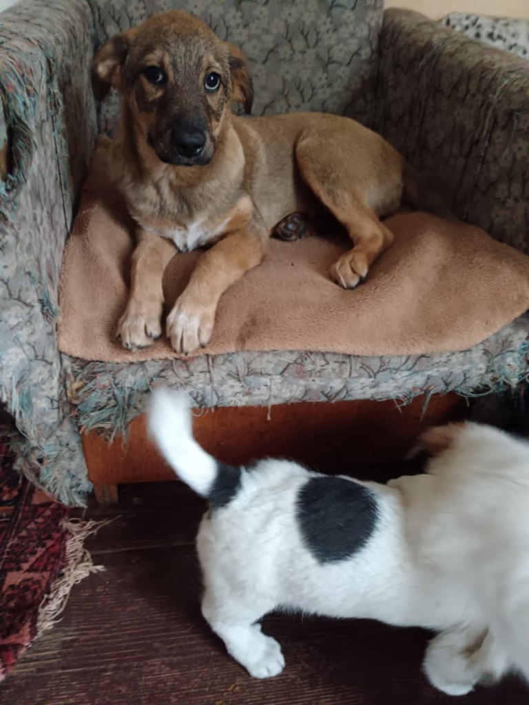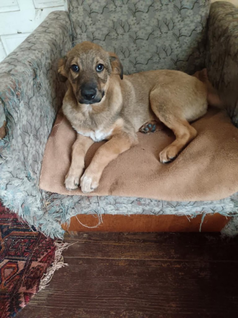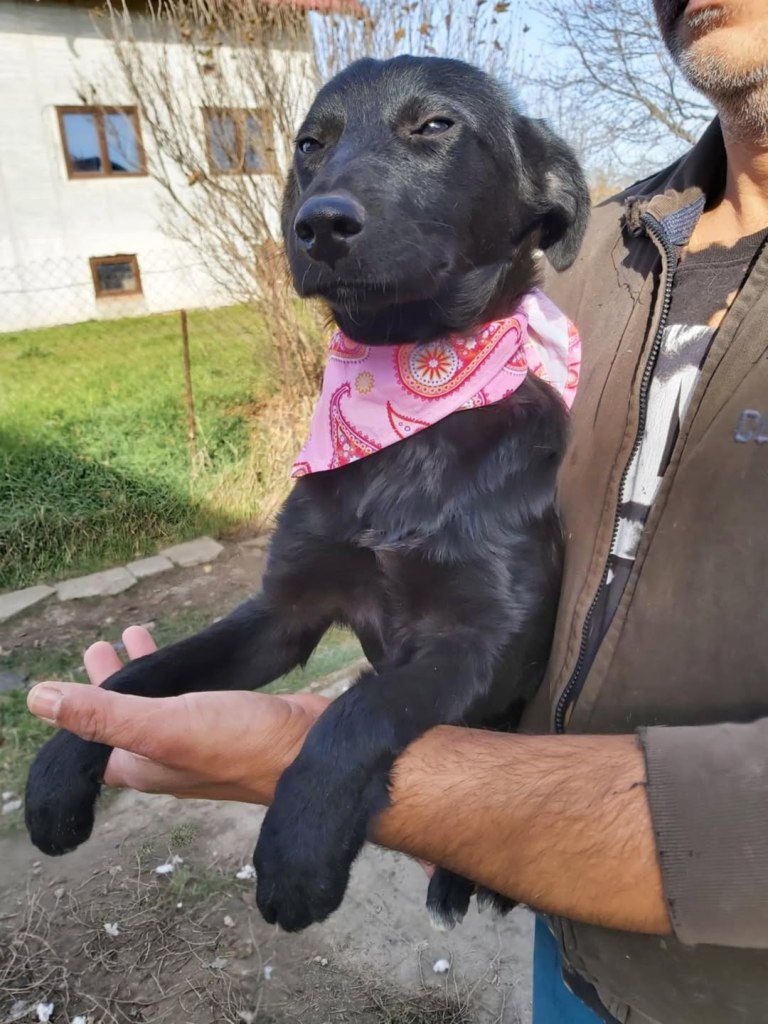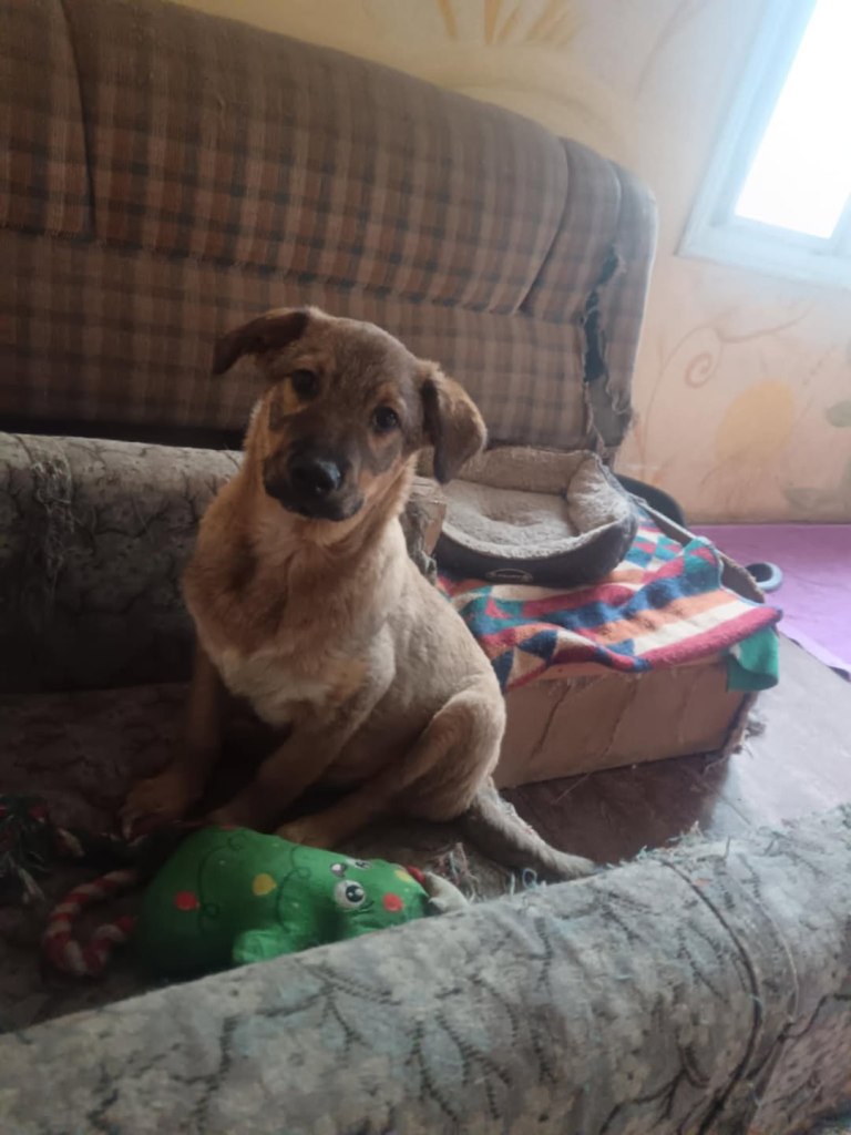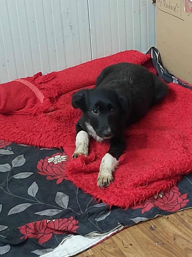 A dear little girl unfortunately caught by dog catchers and taken to Raduati public shelter. She is very sweet and friendly with a little shyness too. The puppies can feel overwhelmed in a big shelter and she will soon be going to the Dog House with Camelia where it’s warm and quieter. She is friendly to the helpers there. She is the smallest and we think she will be a small medium when grown. She is about 4.5 months old at the moment.