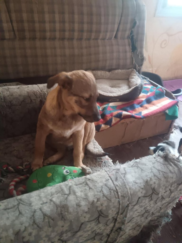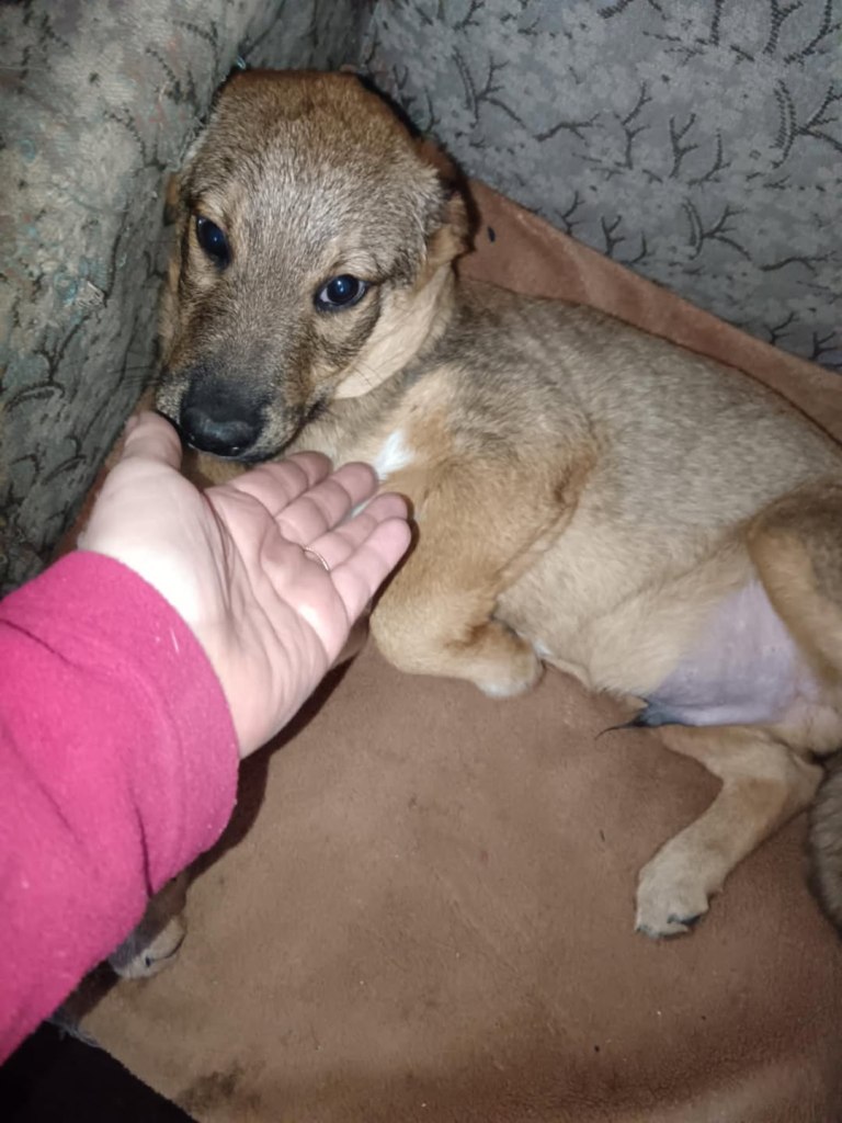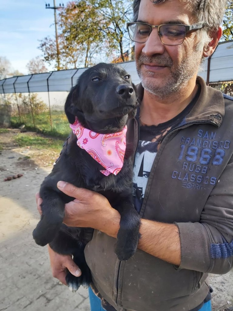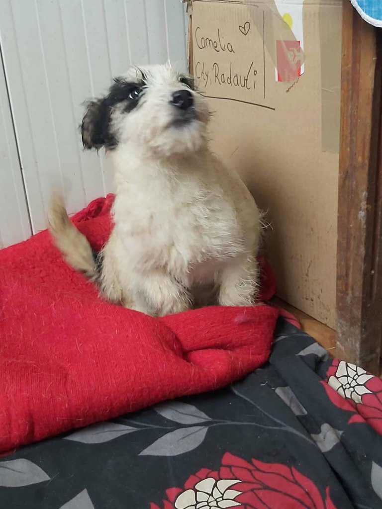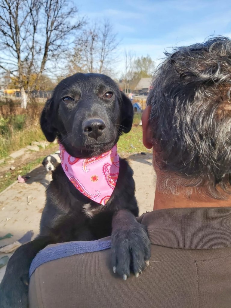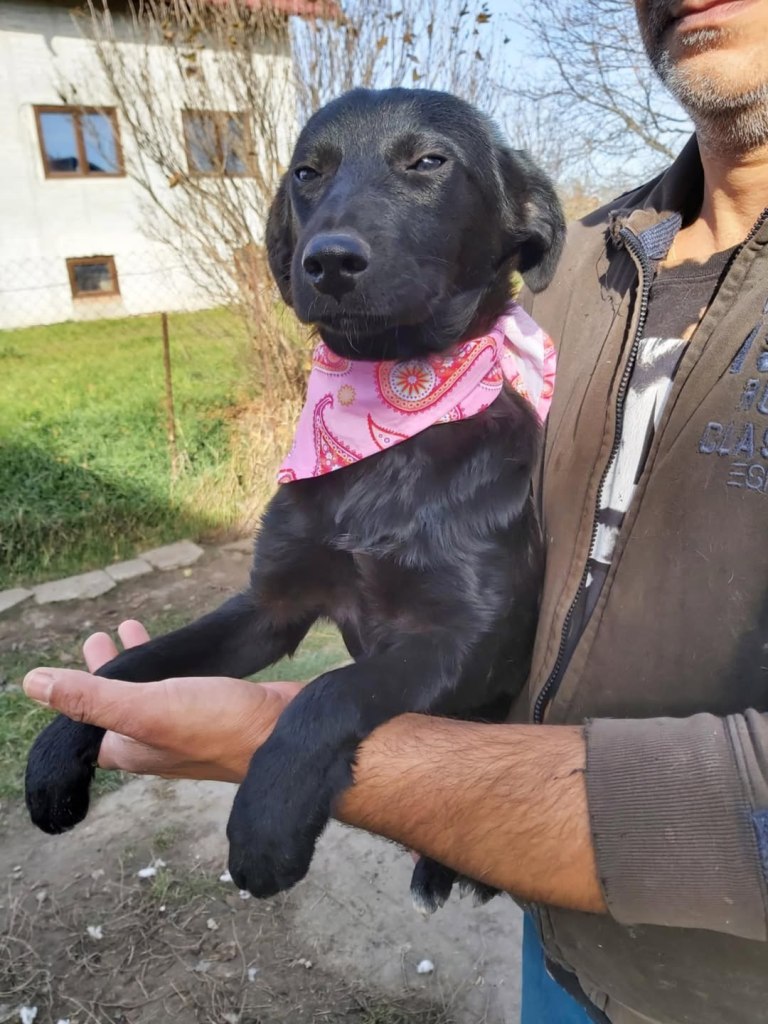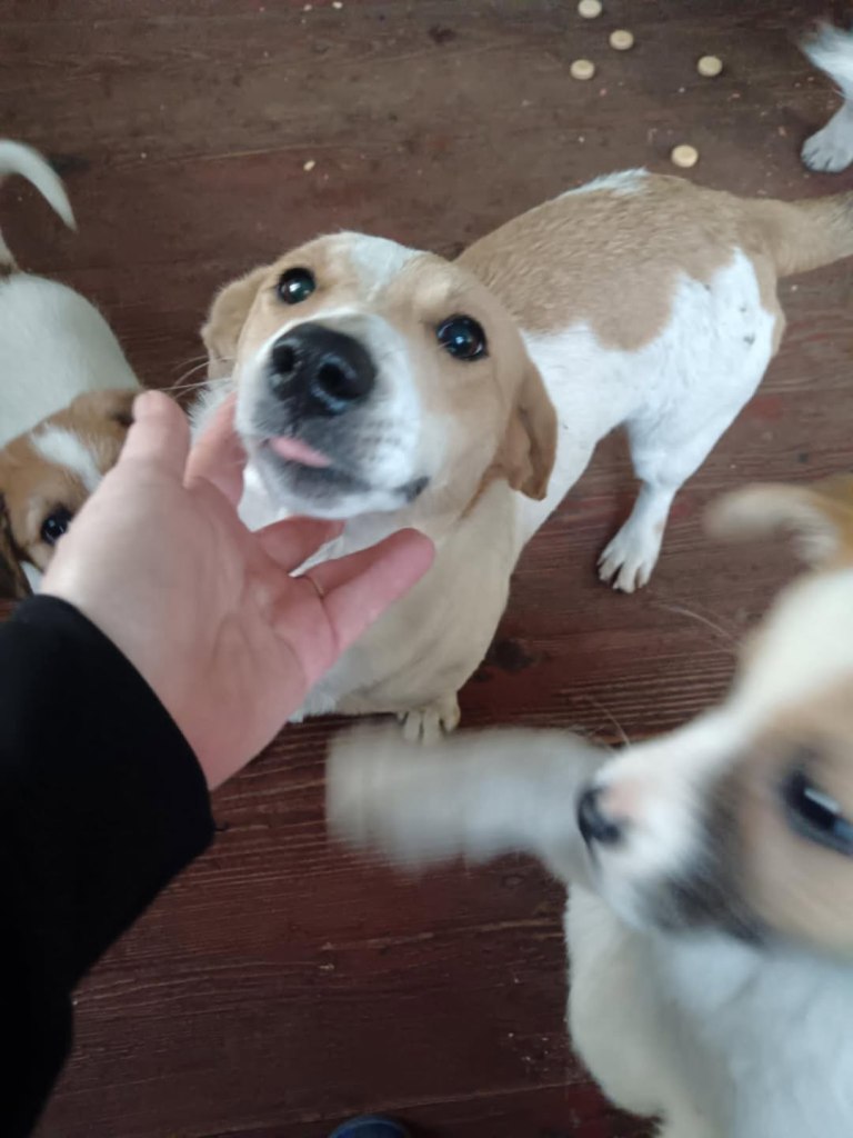 A dear little girl unfortunately caught by dog catchers and taken to Raduati public shelter. She is very sweet and friendly with a little shyness too. The puppies can feel overwhelmed in a big shelter and she will soon be going to the Dog House with Camelia where it’s warm and quieter. She is friendly to the helpers there. She is the smallest and we think she will be a small medium when grown. She is about 4.5 months old at the moment.