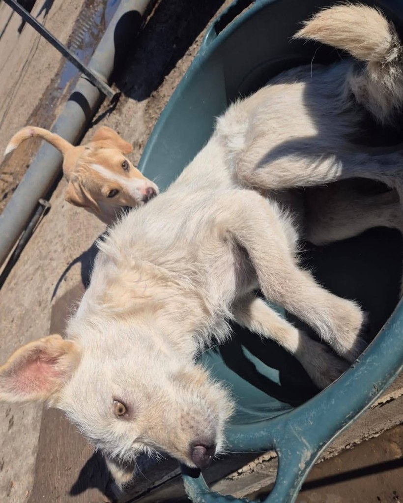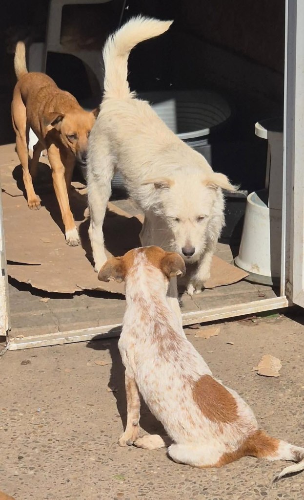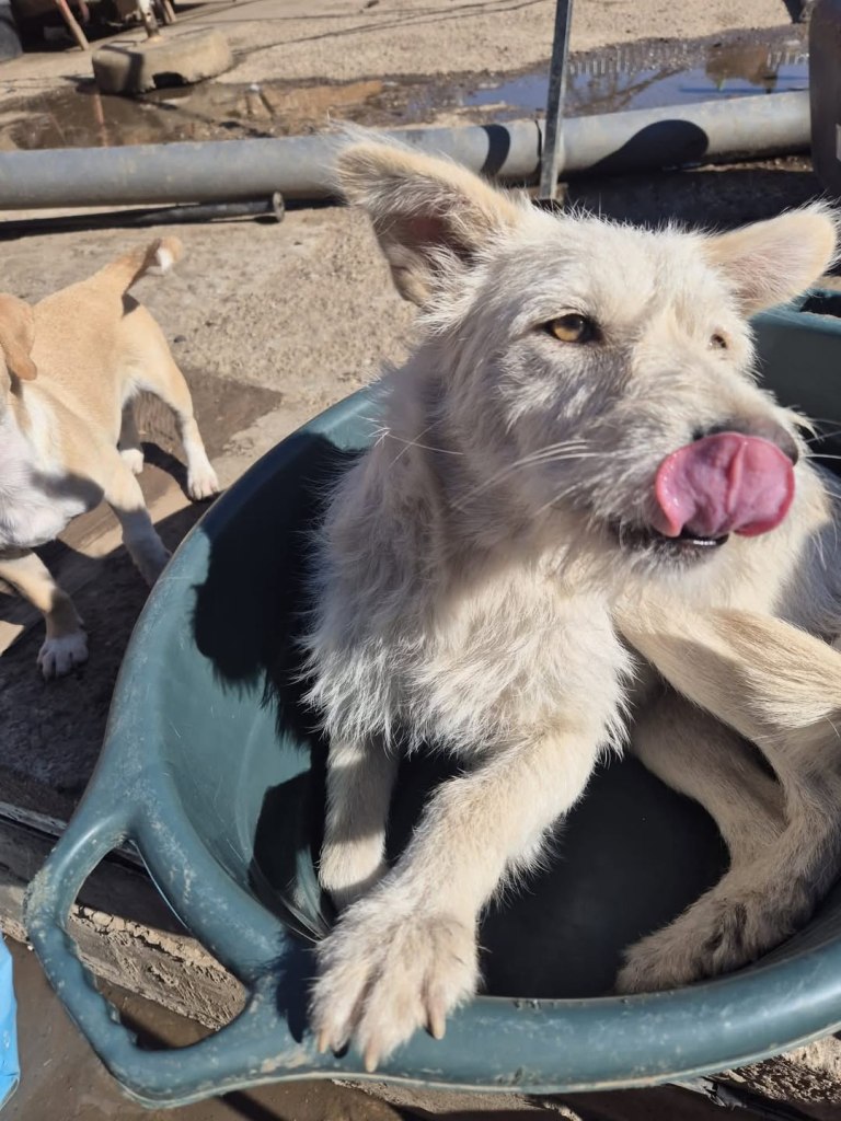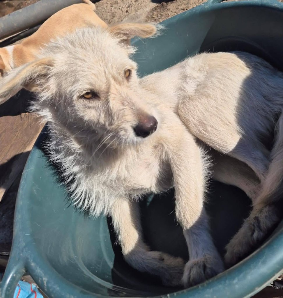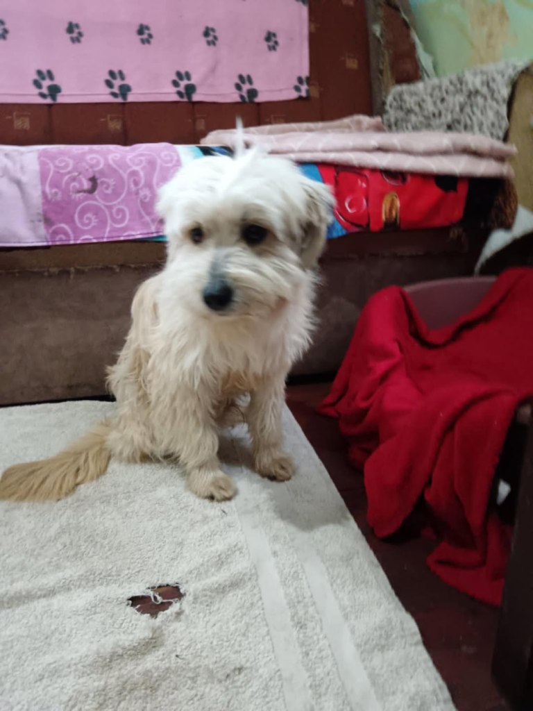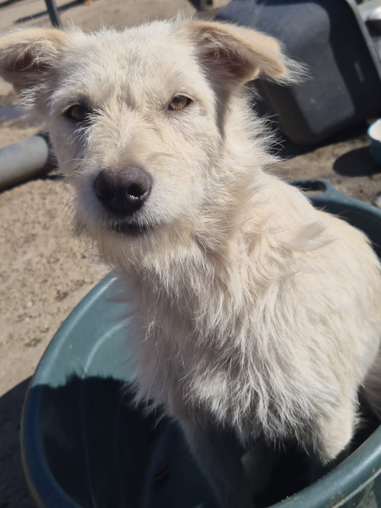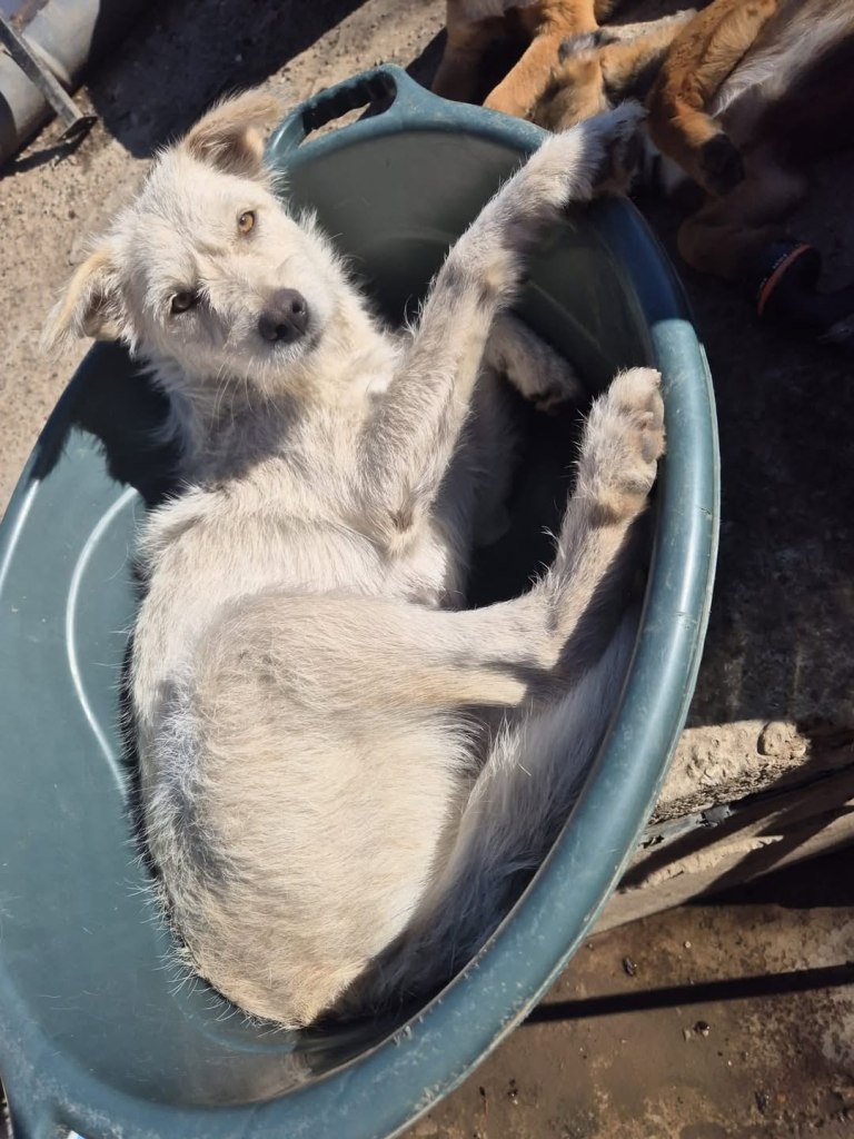 A dear little girl unfortunately caught by dog catchers and taken to Raduati public shelter. She is very sweet and friendly with a little shyness too. The puppies can feel overwhelmed in a big shelter and she will soon be going to the Dog House with Camelia where it’s warm and quieter. She is friendly to the helpers there. She is the smallest and we think she will be a small medium when grown. She is about 4.5 months old at the moment.