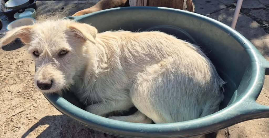 A dear little girl unfortunately caught by dog catchers and taken to Raduati public shelter. She is very sweet and friendly with a little shyness too. The puppies can feel overwhelmed in a big shelter and she will soon be going to the Dog House with Camelia where it’s warm and quieter. She is friendly to the helpers there. We think she will be a small medium when grown. She is about 4.5 months old at the moment. We’re told she is very cuddly.