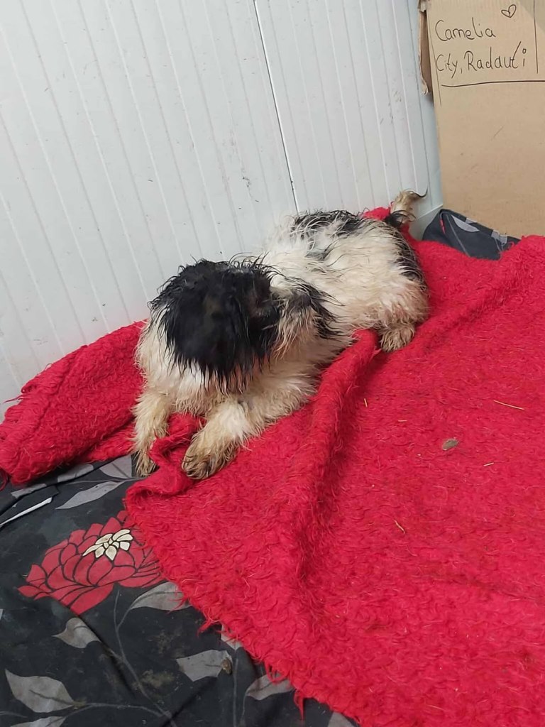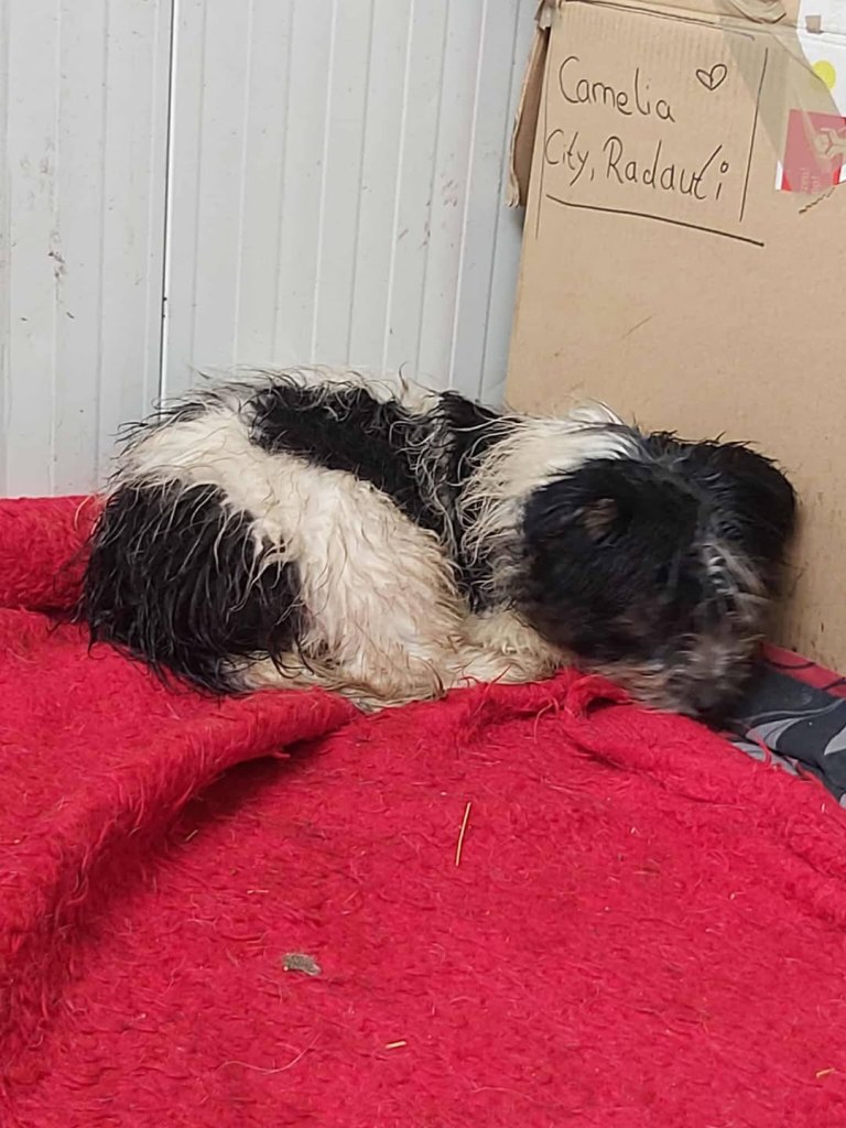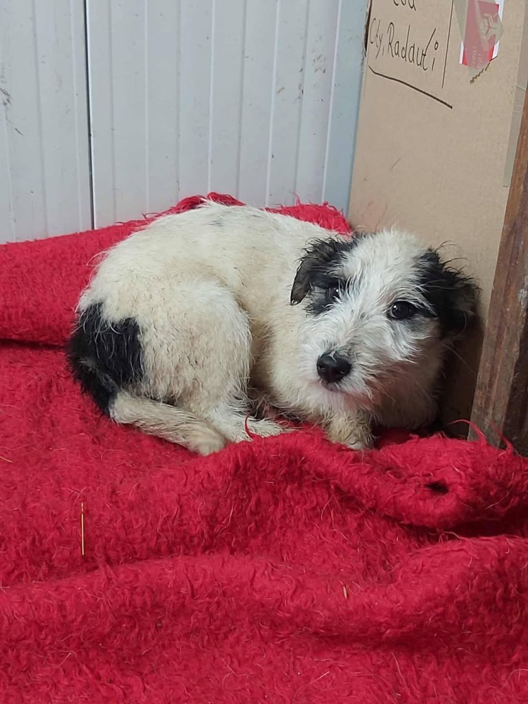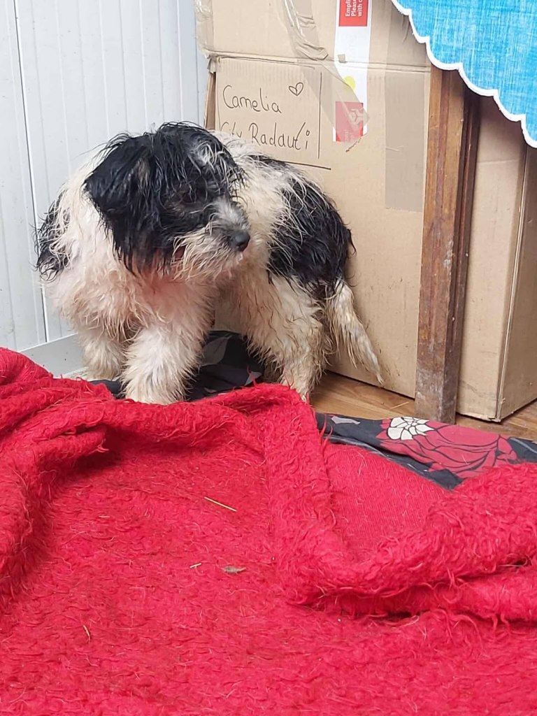 A sweet little boy from Raduati public shelter. He was in with the big dogs, looking a bit lost. Mirela looked after him and made sure he ate. He was very wet and cold one day, so he went to vet Gabi for a bath and a haircut. He is with Camelia now at the dog house. He is now very warm and comfortable. He gets along well with everyone there. He is very friendly and small, weighs around 10kgs. He is about 4-5 years old.
