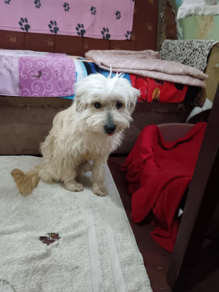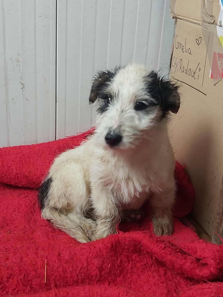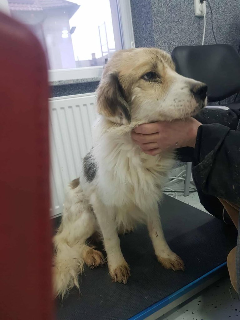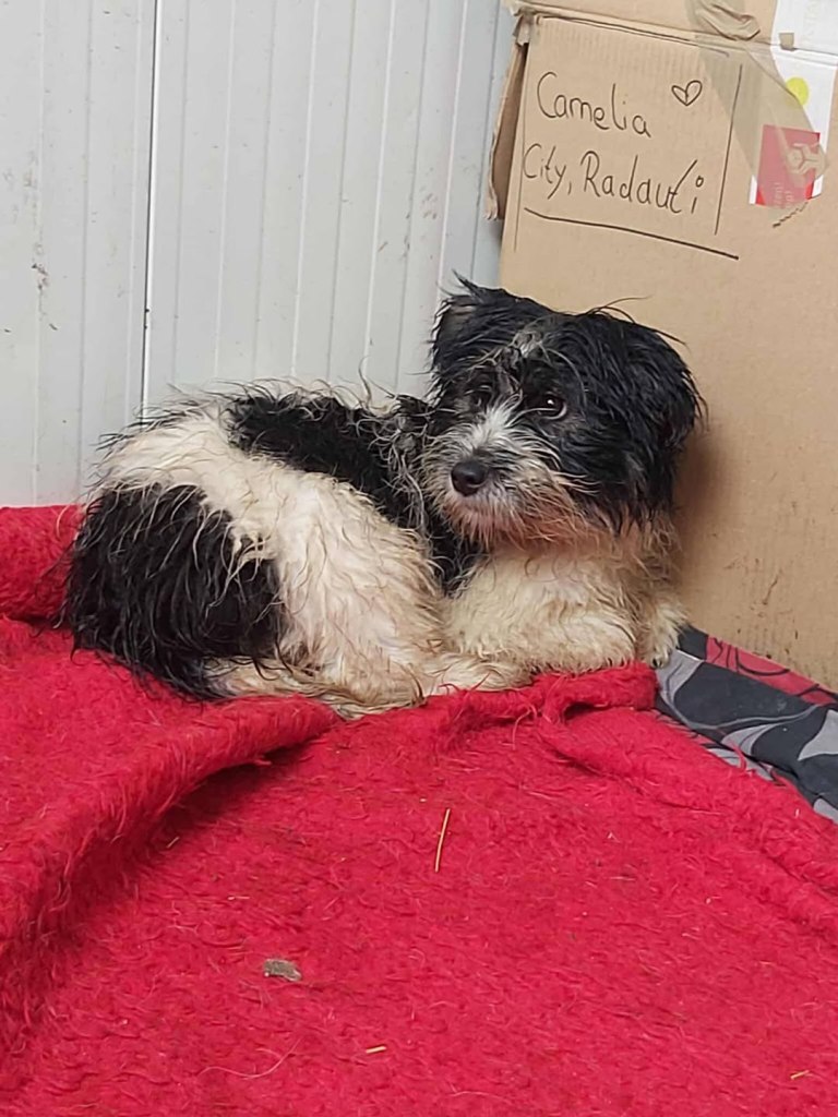 A sweet little boy from Raduati public shelter. He was in with the big dogs, looking a bit lost. Mirela looked after him and made sure he ate. He was very wet and cold one day, so he went to vet Gabi for a bath and a haircut. He is with Camelia now at the dog house. He is now very warm and comfortable. He gets along well with everyone there. He is very friendly and small, weighs around 10kgs. He is about 4-5 years old.