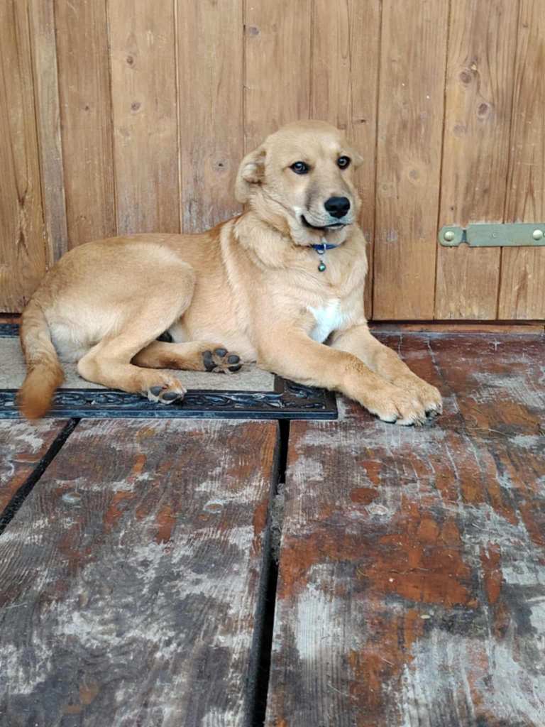A little girl found on the street by our friends when she was a puppy. She was homed as a puppy to a lovely lady in Romania. This should have been her lifelong home and the lady has spoilt her and loved her very much. Sadly the chickens roam free on the land and Layla has killed some. Layla lives with other dogs with no problems. She is sweet and friendly. She has had practice on the lead. She is a year old. She is a small medium size at 40 cms high, 60 cms long.