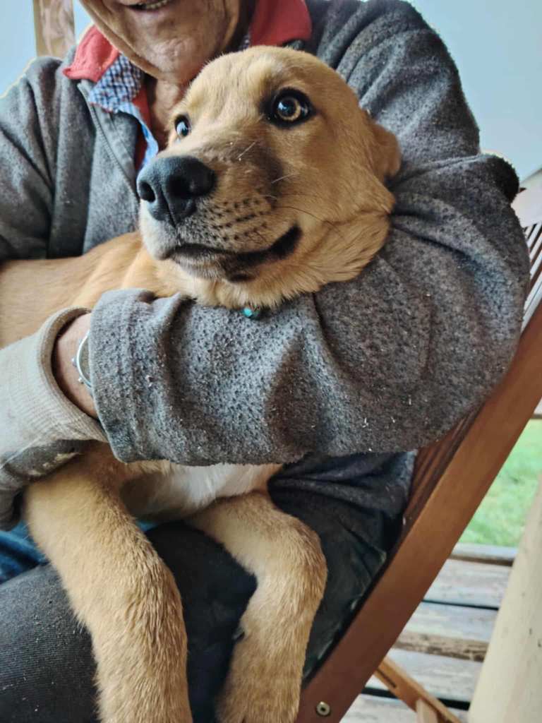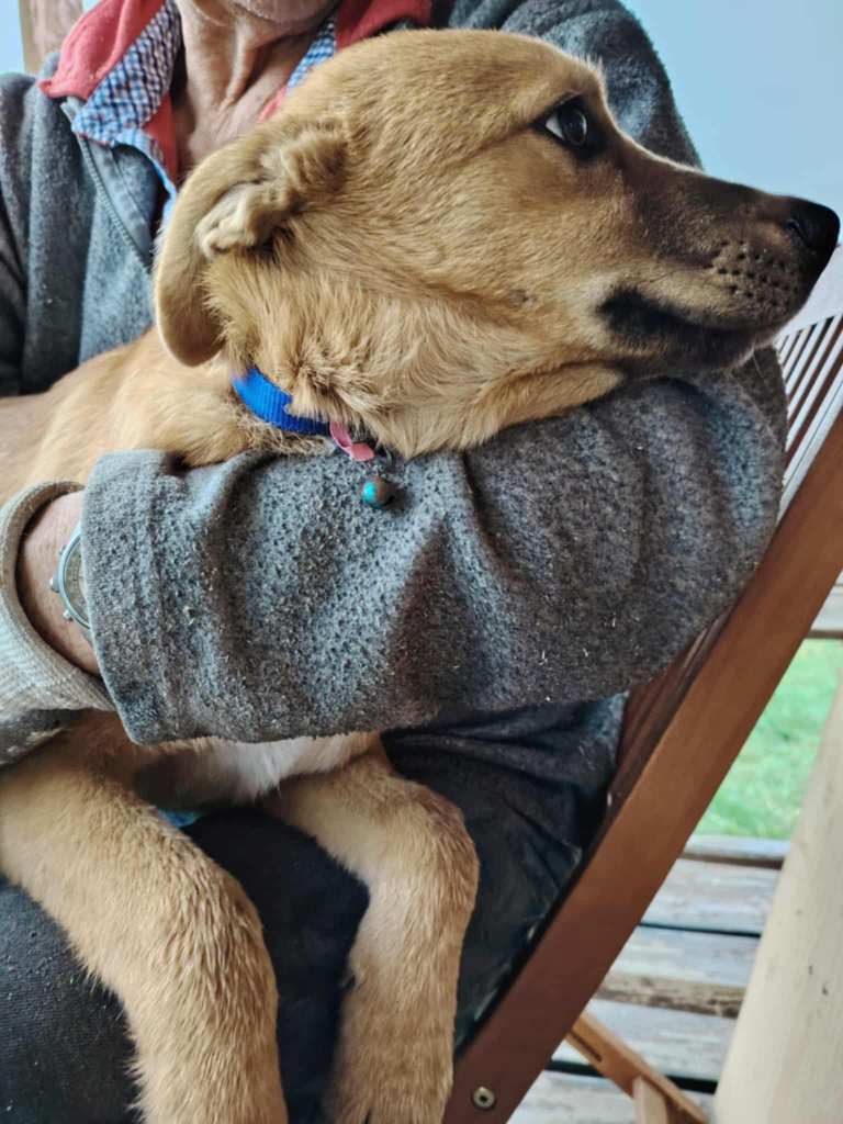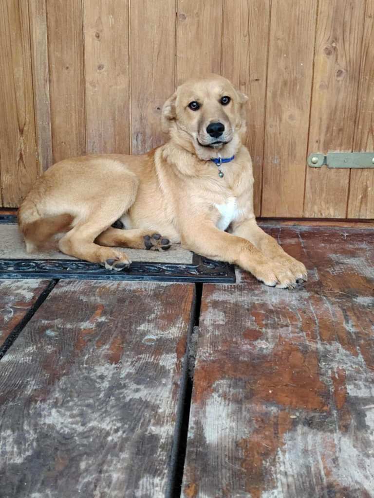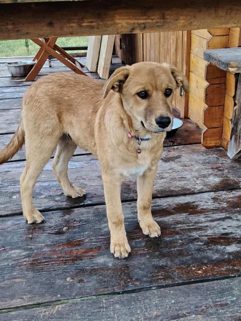 A sweet puppy who was left outside the shelter of our transporter. Of course she took him in. He is 7.5 months old now. He is sweet, friendly, playful and sometimes excitable.