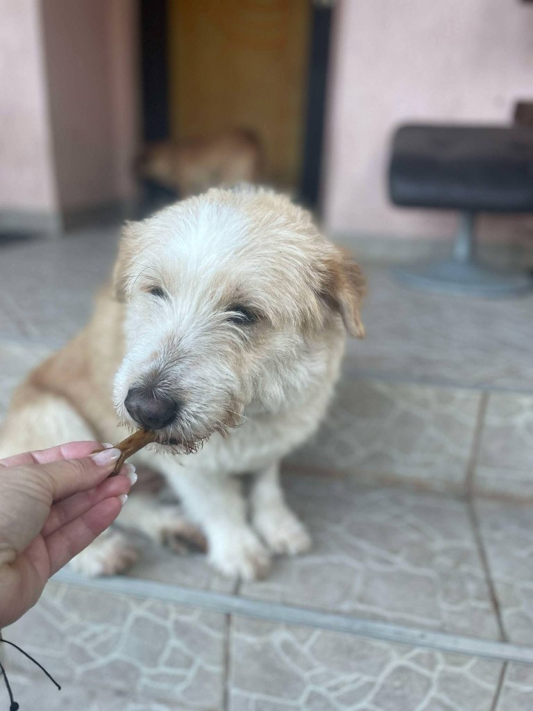 A gorgeous little boy who’s owner sadly died in Romania. He is safe in foster now and being very well cared for. He lives with other dogs there with no problems. He is extremely affectionate and loving. A gentle little soul. He used to live with 19 cats and he absolutely loves cats. He isn’t big, a small medium. He has had a little practice on the lead. He is 5-6 years old. Nothing too chaotic for him as he’s used to a quieter lifestyle.