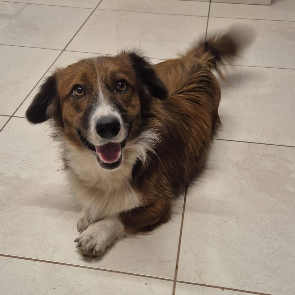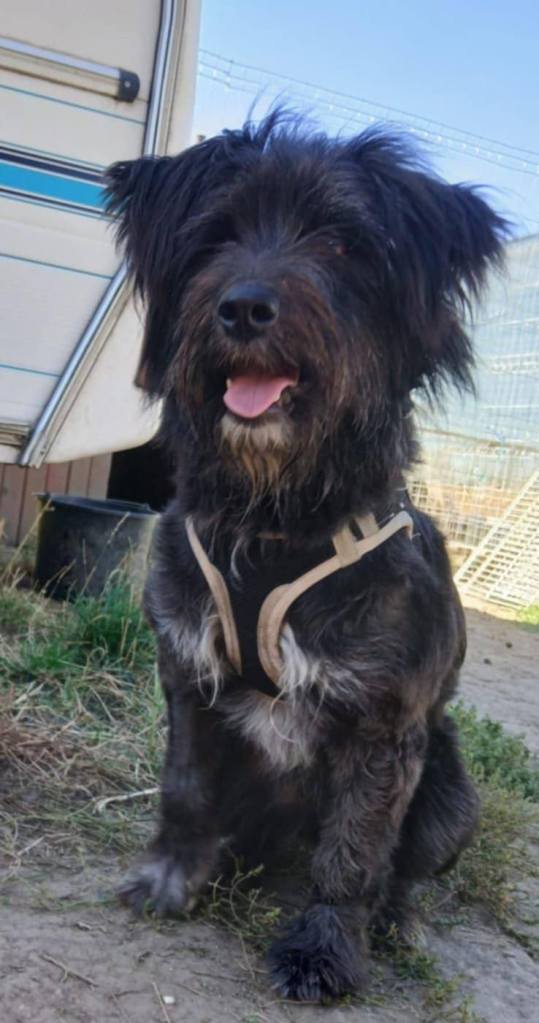 A small girl who was abandoned outside the shelter of one of our transporters. She is so lovely. She is a crazy loon with plenty of energy. She loves people and is super friendly. She is a busy dog and would suit an energetic family who are around a lot. She is extremely loving, but doesn’t like cats. She is with other dogs with no issues. She is around 4 years old.