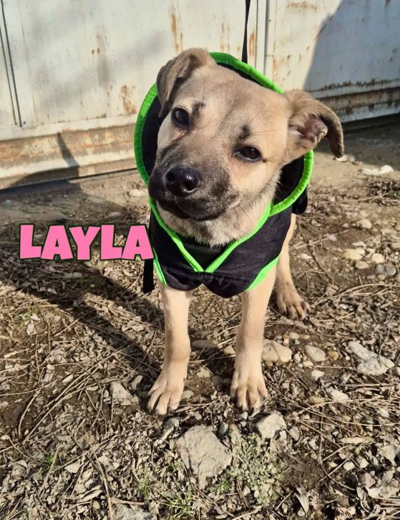 A little girl found on the street by our friends when she was a puppy. She was homed as a puppy to a lovely lady in Romania. This should have been her lifelong home and the lady has spoilt her and loved her very much. Sadly the chickens roam free on the land and Layla has killed some. Layla lives with other dogs with no problems. She is sweet and friendly. She has had practice on the lead. She is a year old. She is a small medium size at 40 cms high, 60 cms long.
