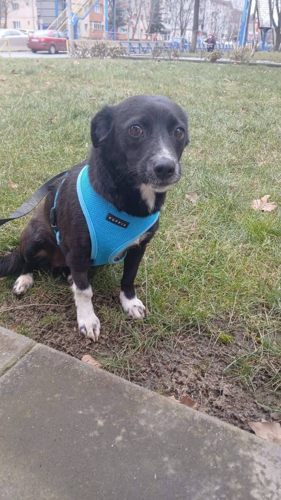 A small boy who was abandoned and living outside an apartment block. He survived because kind people fed him. Andreea has taken him to safety. He is with other dogs and has settled very well. He is sweet and friendly to everyone. He enjoys a fuss and has had practice on a lead. He is comfortable around cats. He is a year old approximately. He is a gentle boy. He is about 6kgs in weight and around 30 cms high.
