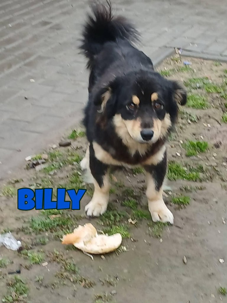 Billy is living on the streets at the moment as no room at Andreea’s shelter. Hopefully there will be a place soon. His owners went abroad and left him to fend for himself on the street. A neighbour has made a shelter out of some boxes. Billy will come for a fuss as he loves people and is very friendly. He is good with other dogs. He is small at approximately 30cms and weighs around 10kgs. He is 1.5 years old.
