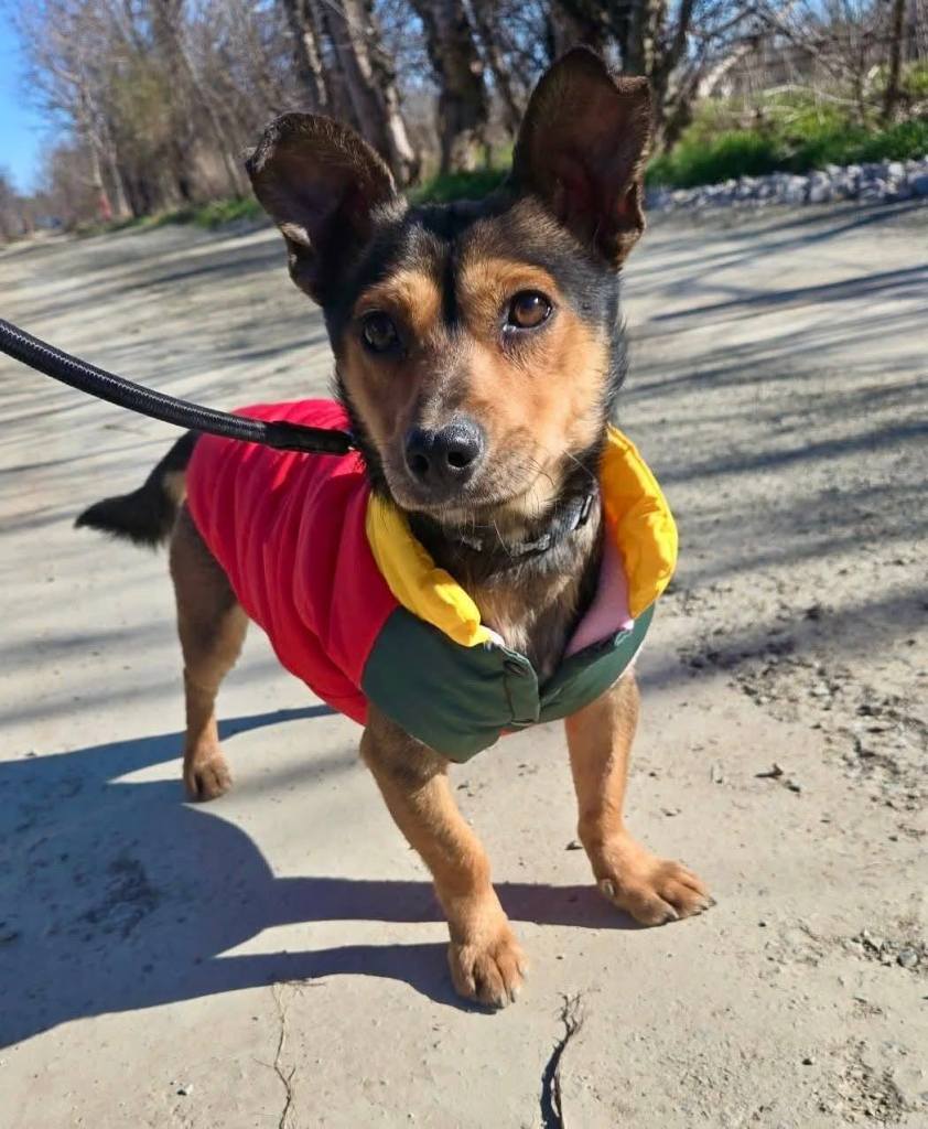 A little puppy that found his way to the public shelter and dug his way under the fence. He was too small to stay there so Mirela took him home. He is full of character and mischievous. He gets along well with all of the other dogs and puppies and is fairly confident. He is almost 5 months old and we think he will be medium in size. He is tiny now, but will grow.